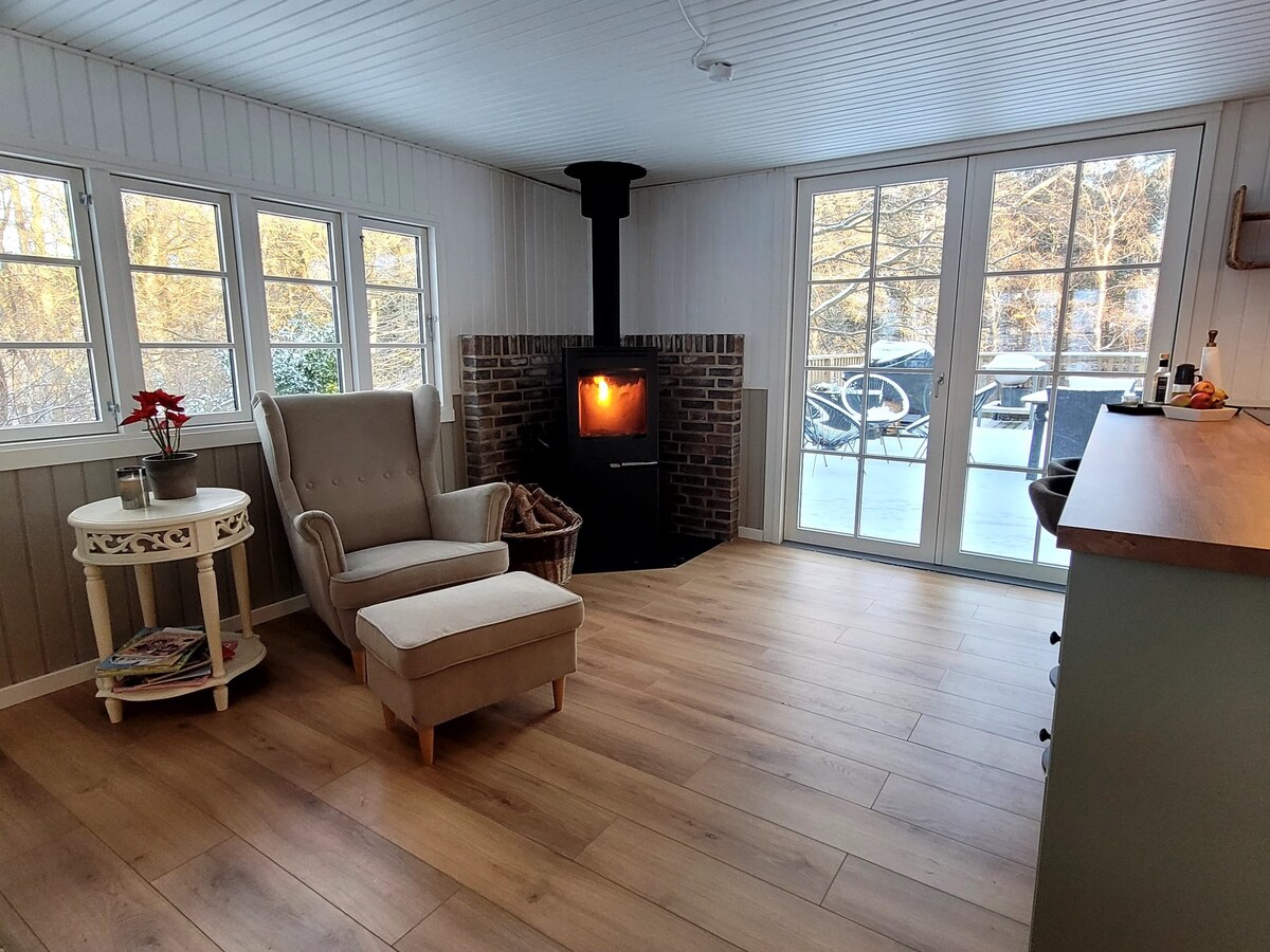 Det lille blå huset i skogen byr på ro og nærvær. Her kan du slå føttene opp eller vandre bakkene tynne i det vakre landskapet på Syd-djurs. Det er mange aktiviteter for hele familien bare noen få minutters kjøretur fra hytta. Om vinteren kan du tenne bålet, peisen og rulle ned lerretet og se en god film. Om våren og sommeren kan du nyte den nybygde terrassen med en god kopp kaffe og lyden av de mange fuglene og dyrene som bor i hagen. 15 min til Djurs Sommerland. 15 min til Mols Bjerge.