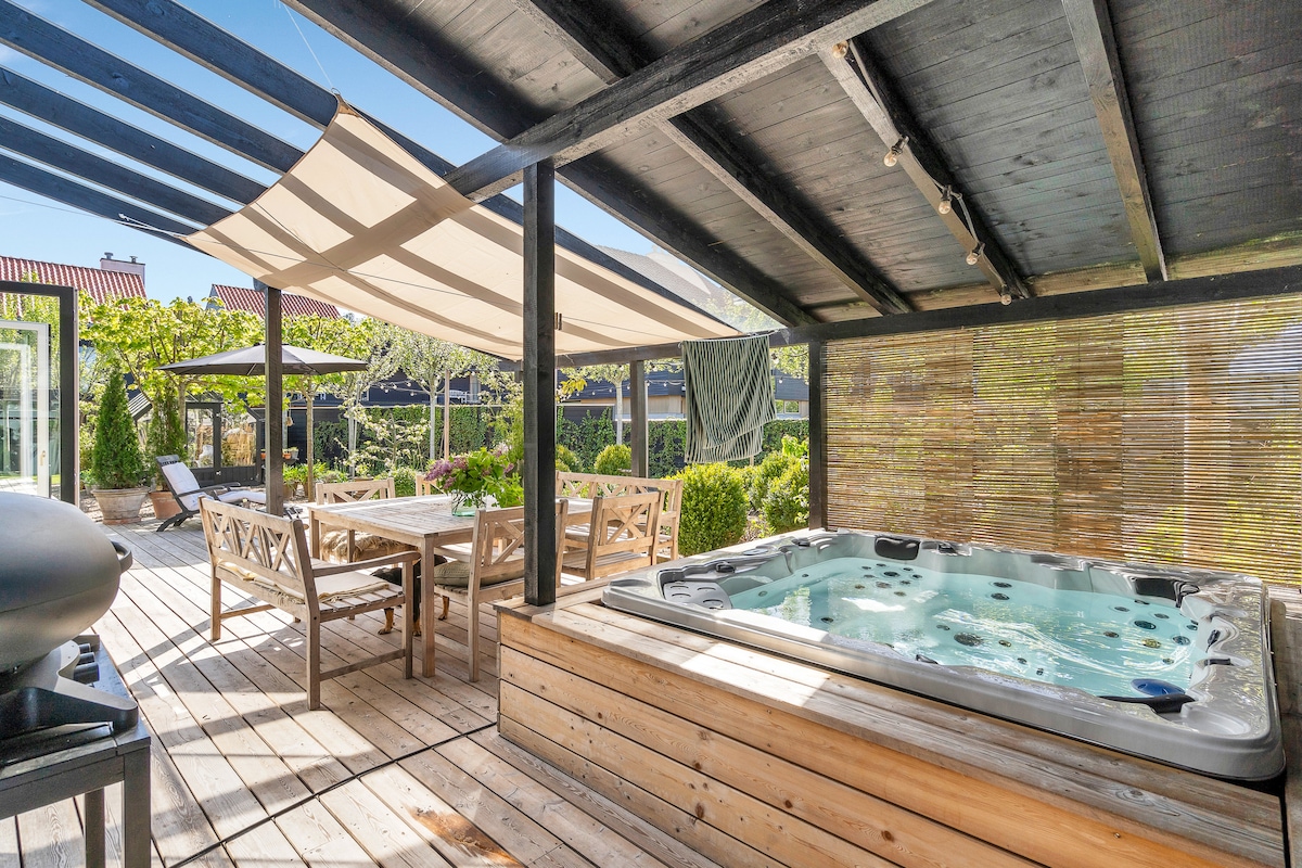 Velkommen til min nyrenoverte villa i hjertet av Aarhus! Villaen har 3 soverom, 2 bad (ett med badekar), 3 stuer, en hjemmekino, sauna og en vinkjeller. Nyt den solrike terrassen, perfekt for avslapning eller grilling, og utforsk byen med sykler tilgjengelig under oppholdet. Villaen inkluderer også et moderne kjøkken, vaskerom og en garasje med lademulighet for elbil. Med Wi-Fi, TV-er og en sentral beliggenhet nær Aarhus' beste attraksjoner, er denne villaen ideell for både jobb og fritid!