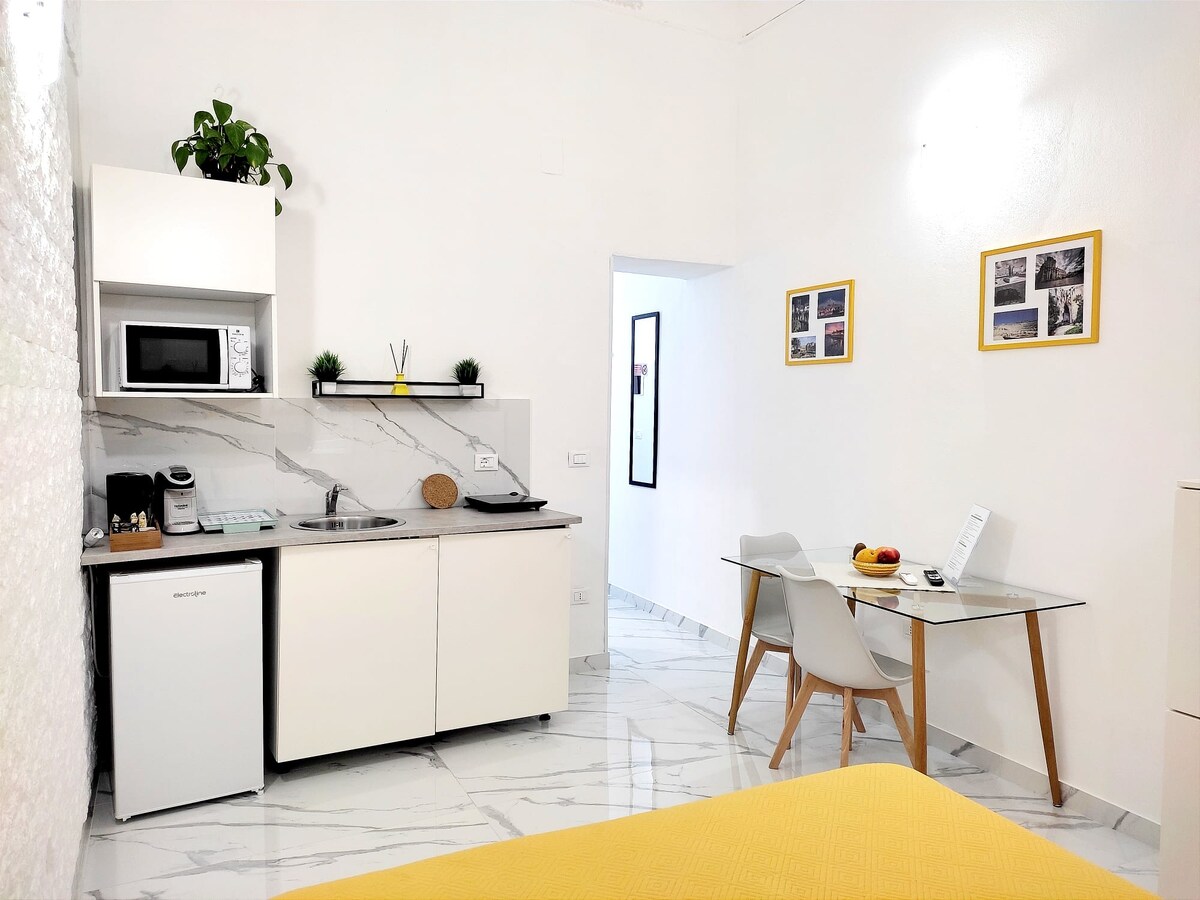 Stor leilighet på ca. 45 kvm med fullt utstyrt kjøkken. Smart-TV, Mikrobølgeovn, vannkoker og kaffemaskin med kapsler tilgjengelig. Baderom med stor dusj, ekstremt komfortabelt. Boblebad for to personer Veldig fin balkong for å nyte alt i ro og mak. Alt dette i hjertet av Siracusa, noen få skritt fra Ortigia og den arkeologiske parken Mulighet for gratis bagasjeoppbevaring Supermarked og bussholdeplass til CT flyplass ligger ved siden av bygningen