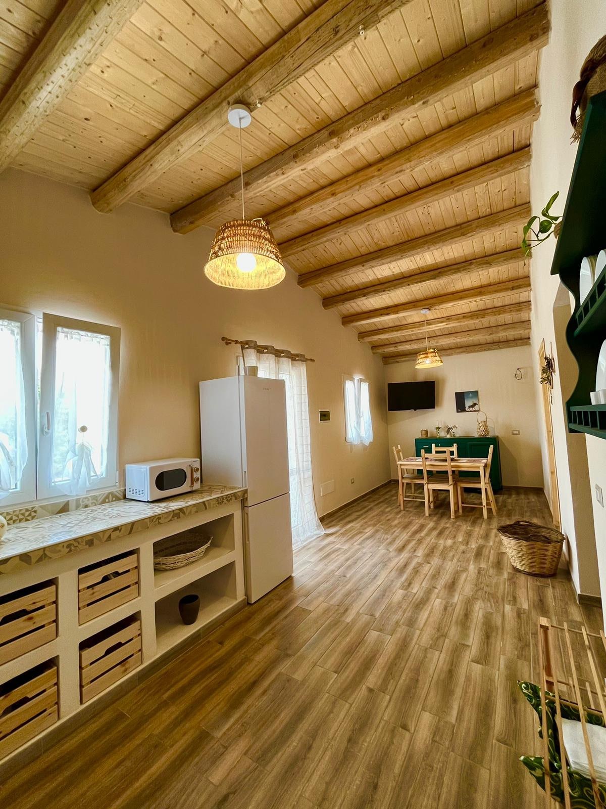 En komfortabel hytte på 35 kvm med en gjennomtenkt og minimalistisk stil, som inkluderer et stort soverom komplett med en dobbeltseng i en luftig alkove og to enkle sovesofaer, et komplett bad med dusj og en stor terrasse med utsikt over mandler og oliventrær på over 100 kvm, der utekjøkkenet ligger. La Casetta ligger bare en kort spasertur til Casa Romanello, vår andre eiendom som den deler det vakre svømmebassenget med, men har separate åpne områder for privatliv.