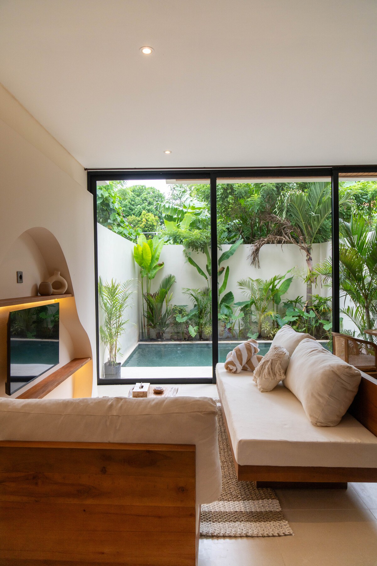 Velkommen til Casa Sajé, det tropiske gjemmestedet ditt bare ti minutter fra Berawa. Denne private villaen med to soverom blander boho chic sjarm, frodige grøntområder, absolutt rolig og moderne komfort. Den er ideell for par, familier, venner eller digitale nomader, og inviterer deg til å roe ned og nyte øyeblikket i en elegant og fredelig naturlig kokong. Casa Sajé er mer enn bare et sted å bo, det er et sted å puste, å koble til igjen og å føle seg fullt til stede.