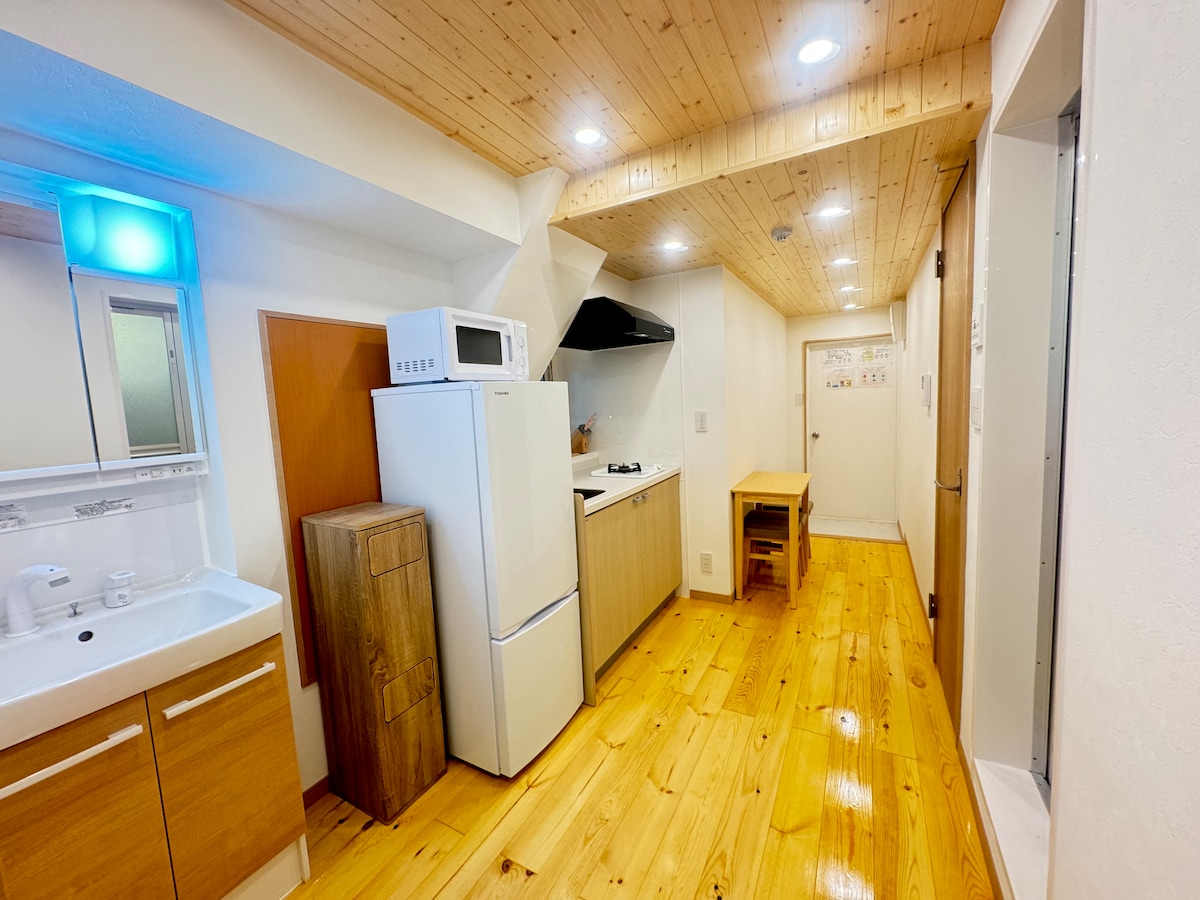 This traditional Japanese house Airbnb is located just a 10-minute walk from Musashi-Sunagawa Station, offering a peaceful, quiet, and relaxed atmosphere in the suburbs of Tokyo. The necessary furniture, appliances, and interior design are designed to maximize the space, creating a comfortable and relaxing atmosphere for guests. The dining area is softly lit, making it ideal for relaxing and enjoying time. Enjoy a heartwarming stay with your partner or family.