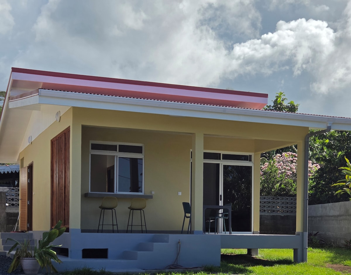 Ia Ora Na! Vi tilbyr et nytt hus på pæler på 106 m². Sentrum ligger 10 minutter unna med bil. Små dagligvarebutikker og restauranter i nærheten. Dra nytte av kajakk og padlebrett for å nå motu Tahunaoe på 15 minutter, som ligger rett overfor. På slutten av dagen kan du slappe av og beundre de fantastiske solnedgangene i Mirimiri med utsikt over øya Bora Bora.