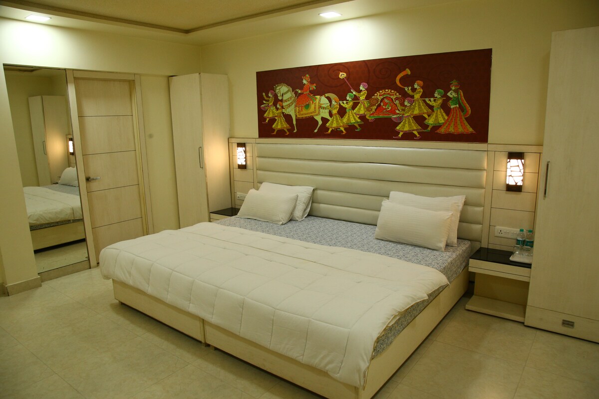 Velkommen til Sukoon Stays – luksusleilighet med tre soverom i nærheten av Taj Mahal, designet for reisende som verdsetter komfort, sikkerhet og sømløs gjestfrihet. Stedet blander elegant interiør med en varm, hjemmekoselig atmosfære, og er ideelt for familier, par og internasjonale gjester. Beliggende i et trygt, inngjerdet område, tilbyr personlig innsjekking, privat parkering, tilgang til treningssenter og utmerket forbindelse. Enten du er på besøk for sightseeing eller et avslappet opphold, lover vi fred, privatliv og en virkelig stressfri opplevelse.