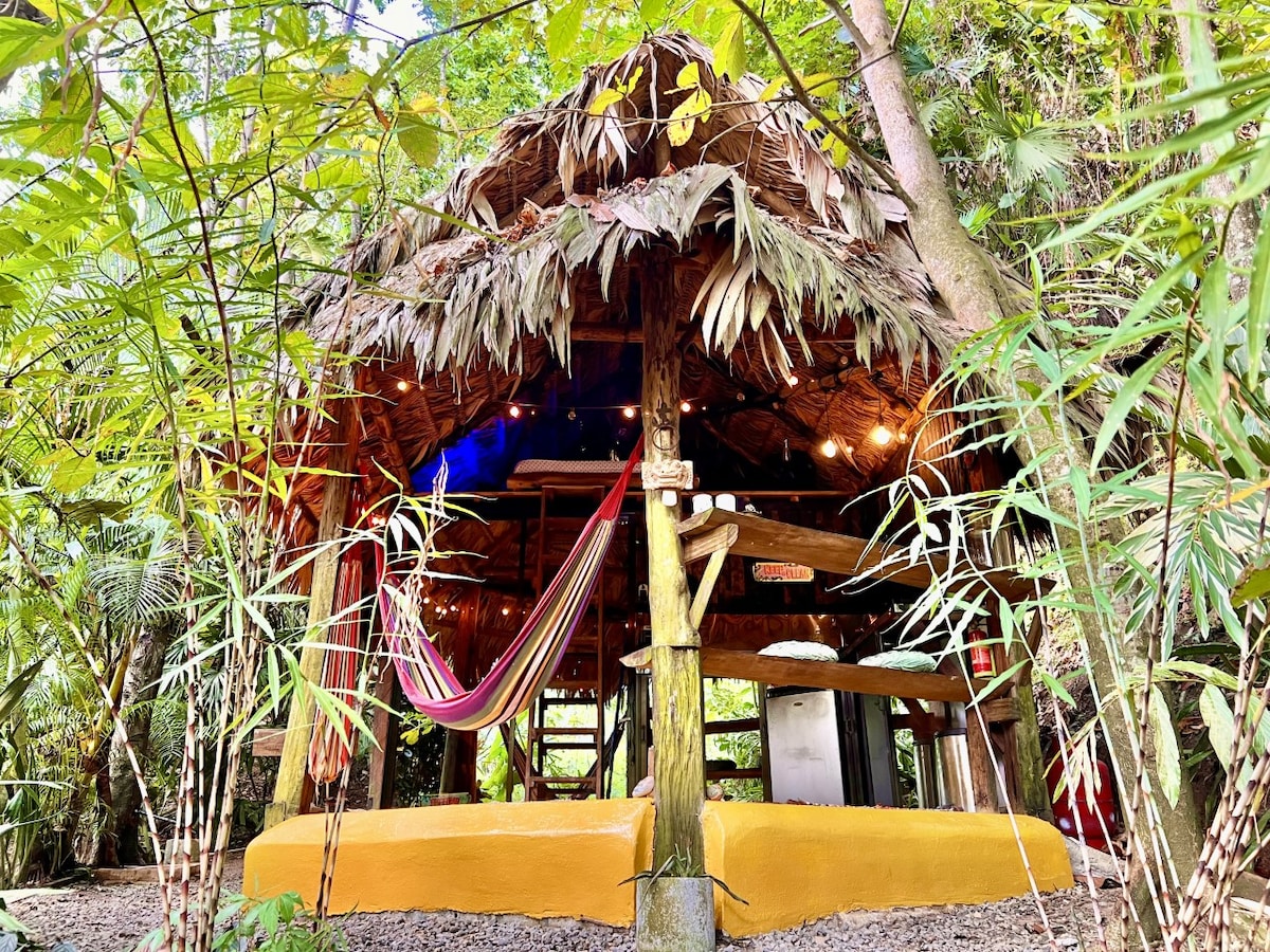 Åpent glampinghus i nydelig regnskogshage