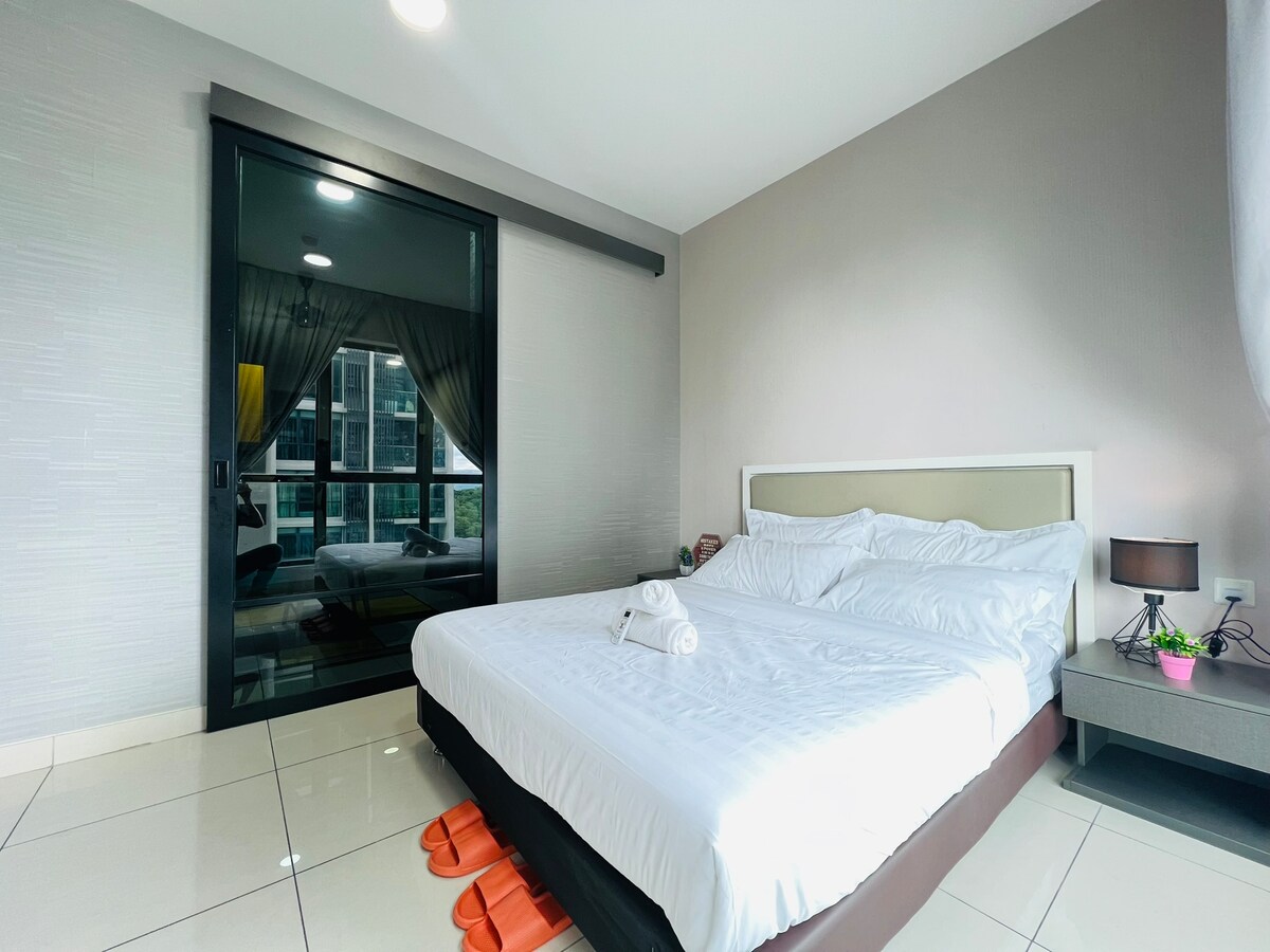 StarSuiteAC – Luxury Stay Above the Clouds! En luksuriøst designet dupleks i høy etasje med en fantastisk utsikt over KL-silhuetten. Slapp av under det galakselignende stjernetaket og opplev en staycation som ingen andre! Nyt et lydisolert karaokerom, biljard og airhockey, og en hjemmekino med surroundlyd for en ekte filmopplevelse. Fasiliteter: kjøkken, kjøleskap, mikrobølgeovn, riskoker, luftfrityr, vannfilter, vaskemaskin (med tørketrommel), massasjestol osv.