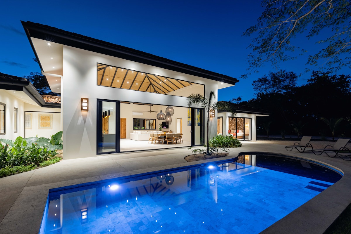 Gå inn i denne fantastiske, moderne boho-villaen hvor design møter bekvemmelighet. Gå til Tamarindos beste restauranter og strand, og kom deretter tilbake til din private oase med evighetsbasseng. Den åpne utformingen gir alle sitt eget rom: fire soverom med eget bad, perfekt for grupper som ønsker privatliv uten å føle seg adskilt. Forvent naturlig lys, 70 tommers smart-TV, en utendørsgrill og gjennomtenkte detaljer overalt. Det er rett og slett fantastisk og vil overgå forventningene dine. Klar til å skape minner?