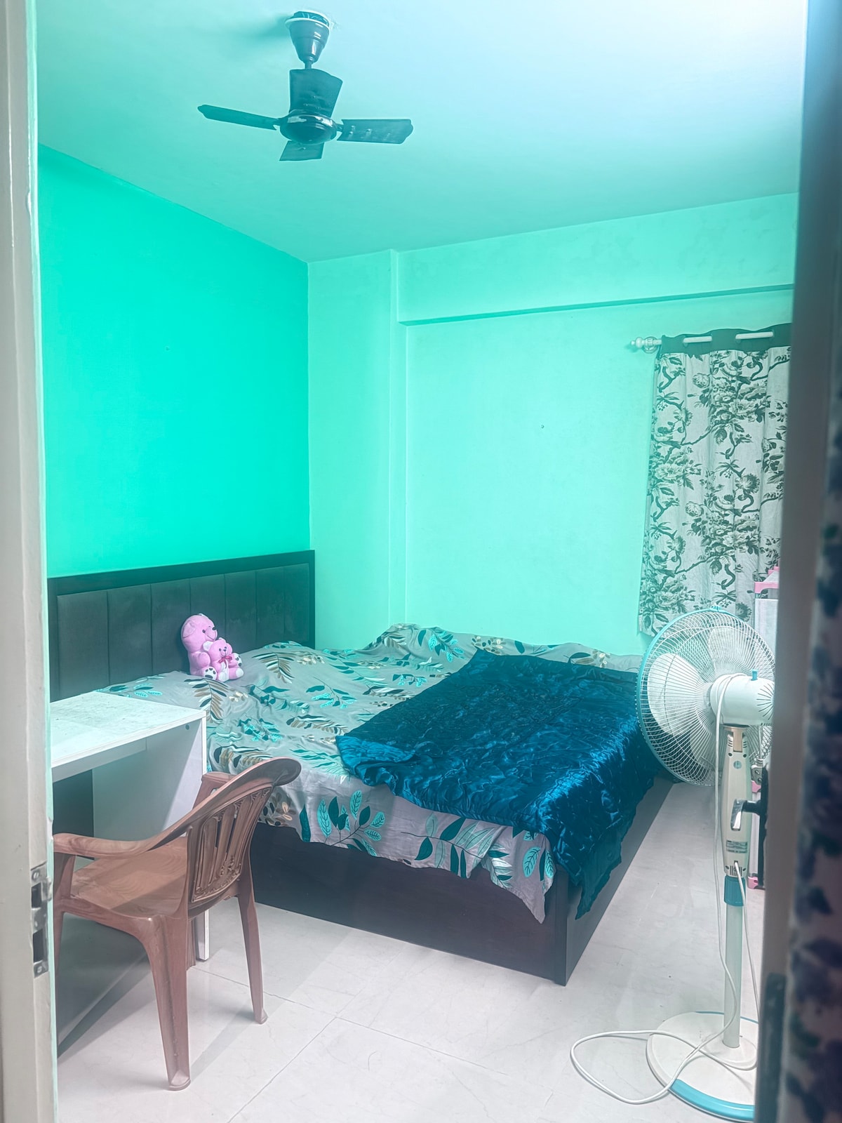 Et fredelig terrasserom midt i det travle Bannerghatta-området. - TRÅDLØST NETTVERK med høy hastighet. - TV med Jio-tilkobling - Klimaanlegg 1,5 tonn - Komfortabel sofa og seng – Vannflaske og snacks som får det til å vann i munnen. - UPS Power backup – grunnleggende kjøkkenoppsett Huset har en romslig stue, en komfortabel seng og tilhørende bad. Hele huset har klimaanlegg. MERK: Rommet ligger i tredje etasje, og det er ingen HEIS, og bare trapper er tilgjengelige for å nå toppleiligheten vår.