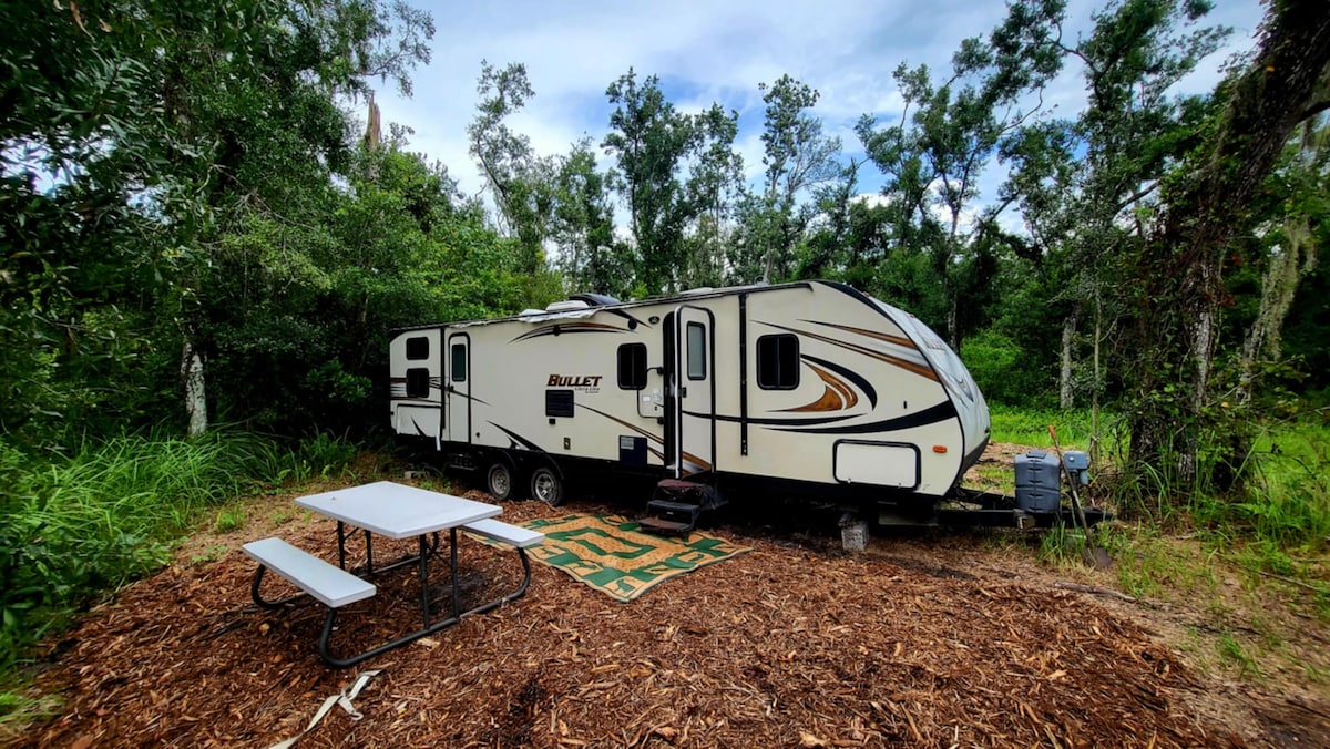Kom og nyt den koselige gårdsbobilen vår. Denne enheten ligger i bakgården vår. Bakgården er et inngjerdet område med sitteplass og liten kullgrill hvor du kan sitte og nyte Florida-været. Vær oppmerksom på at denne enheten er best tilpasset 1–3 gjester. Ja, enheten har plass til en tredje gjest hvis det er et barn. Andre ting det er verdt å merke seg Røyking er ikke tillatt inne i enheten. Det er sitteplass med askebeger ute hvor røyking er tillatt.