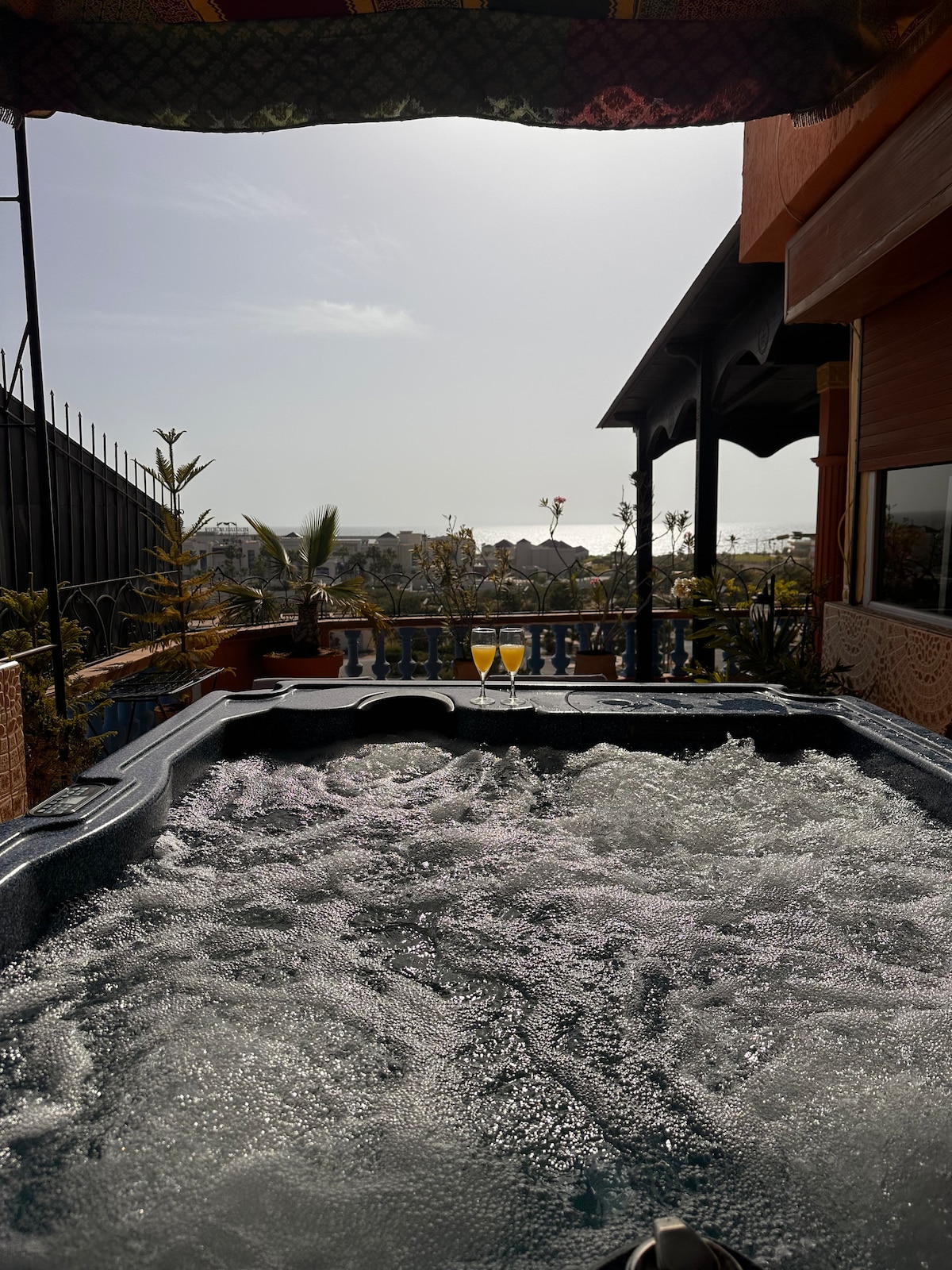 Sol og yoga og hav og jacuzzi i Taghazout-bukten