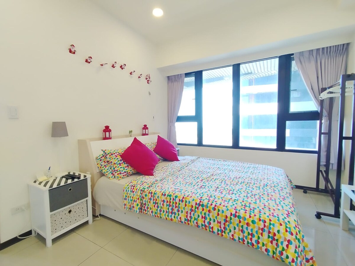Hei venner som elsker å reise, velkommen til Komachi Garden! Elegant og rolig ferieherskapshus med fjellutsikt, som ligger tre minutters gange fra MRT Freshwater Light Railway "A07 Freshwater Administrative Center Station". Det finnes mange sightseeingsteder i nærheten, Fisherman 's Wharf, Tamsui Old Street, Redfly Town.Stuer i nærheten er Carrefour, Starbucks, McDonalds, matrestauranter……. Gi oss beskjed om ankomsttidspunktet ditt på forhånd, hent nøkkelen i lobbyen i første etasje og nyt reiseoppholdet ditt med letthet. Komachi Garden Vita-hagen Ser frem til å ønske deg velkommen!