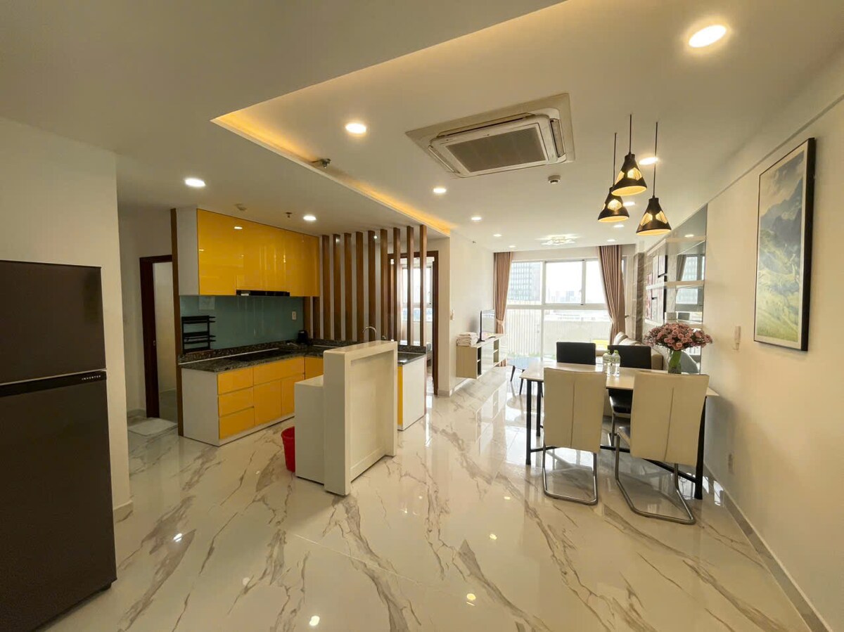 Et godt valg i Phu My Hung, distrikt 7 Stedet mitt har en førsteklasses beliggenhet som har alt innen gangavstand. Det tar fem minutter med motorsykkel/bil til SECC, VivoCity, Cresent Mall... Det er to soverom med to queensize-senger, eget bad og kjøkken. - myke senger for å sove godt - To klimaanlegg fungerer bra - bad: varm dusj, håndkle, sjampo, dusjsåpe, hårføner - Det er kjøleskap, mikrobølgeovn og vannkoker. - GRATIS service: rengjøring av rom, skifte av håndklær, klesvask, motorsykkelparkering