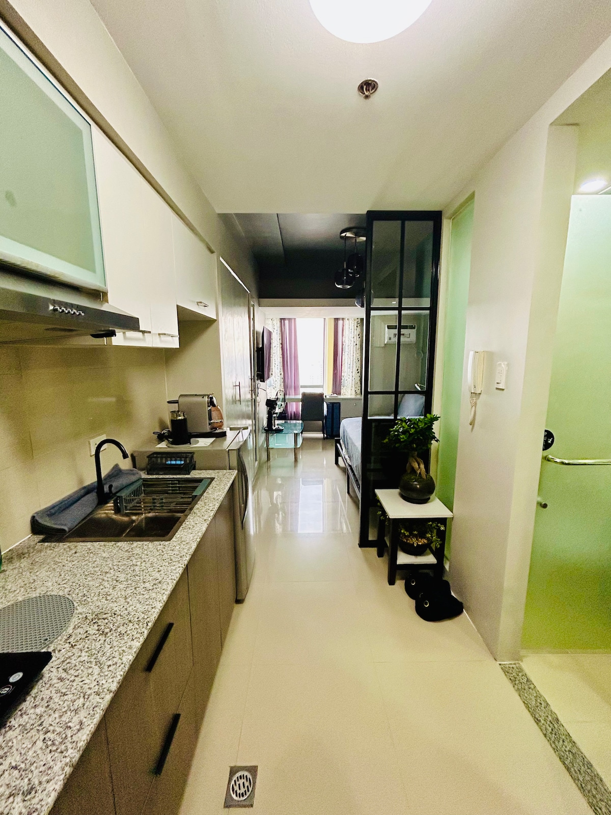 Stay cozy at BedFlixNChill 🏡 Unit Features - Automated door access - 300 mbps Wi-Fi - Air-condition - Full double size bed - King size sofa bed - Bean bag - 50” smart TV with Netflix - Nintendo Switch, Karaoke set, books, etc. 🍳 Kitchenette - Rice cooker, kettle, etc. - Refrigerator & microwave oven - Dinnerware & cooking utensils 🧼 Bathroom Amenities - Hot/Cold shower - Toiletries - Hair dryer 🌇 Building Amenities - Swimming pool (SOON TO OPEN) - Gym (SOON TO OPEN) - Paid parking