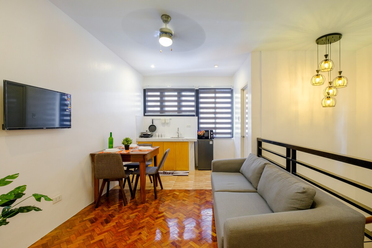 Opplev den perfekte blandingen av hjemmekos og hotelllignende luksus, hvor avslapning, glede og komfort er våre viktigste prioriteringer. Opprinnelig designet som en leilighet med to soverom, har vi forvandlet denne enheten til en suite med ett soverom og balkong, som tilbyr en romslig stue og spiseplass. Komplett med husholdningsapparater, underholdningsalternativer og spillkonsoller, er denne fullt møblerte leiligheten i Quezon City tilgjengelig for daglig, ukentlig eller månedlig utleie, ideell for dine neste ferie.