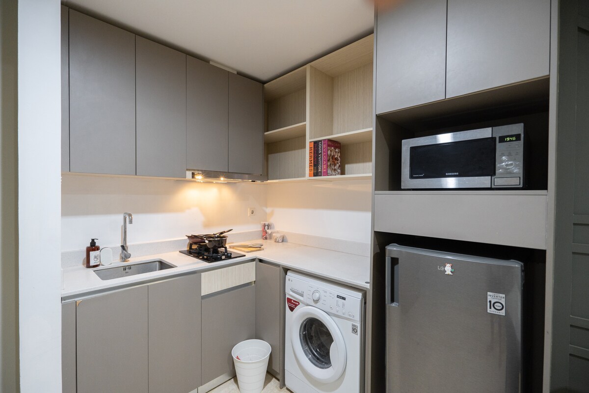 Profesjonelt administrert av Kozystay Flykt til et gjennomtenkt designet tilfluktssted med to soverom i Tangerang — blander japansk-inspirert ro med moderne luksus, supplert med en privat heis, loftsleilighet, basseng, treningsstudio og en førsteklasses beliggenhet i byen. TILGJENGELIG FOR GJESTER: + Digital innsjekking + profesjonelt rengjort (desinfiser) + fasiliteter i hotellklasse og friskt sengetøy + gratis høyhastighets Wi-Fi og kabel-TV + gratis tilgang til Netflix