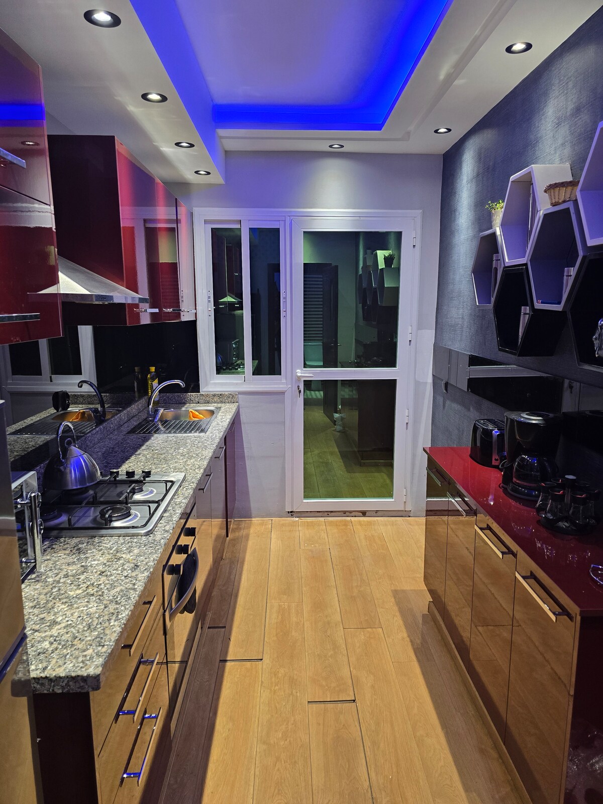 Nyt en stilig og sentral overnatting. Leiligheten ligger i sentrum av Tanger, den er flyttet inn for å garantere deg et upåklagelig opphold. I nærheten av alle fasiliteter: supermarked, bakeri, vaskerom, moské, apotek, bank, spa, restauranter og kafeer. stranden ligger 5 minutter unna, Tanger havn 10 minutter unna og flyplassen ligger 20 minutter unna.