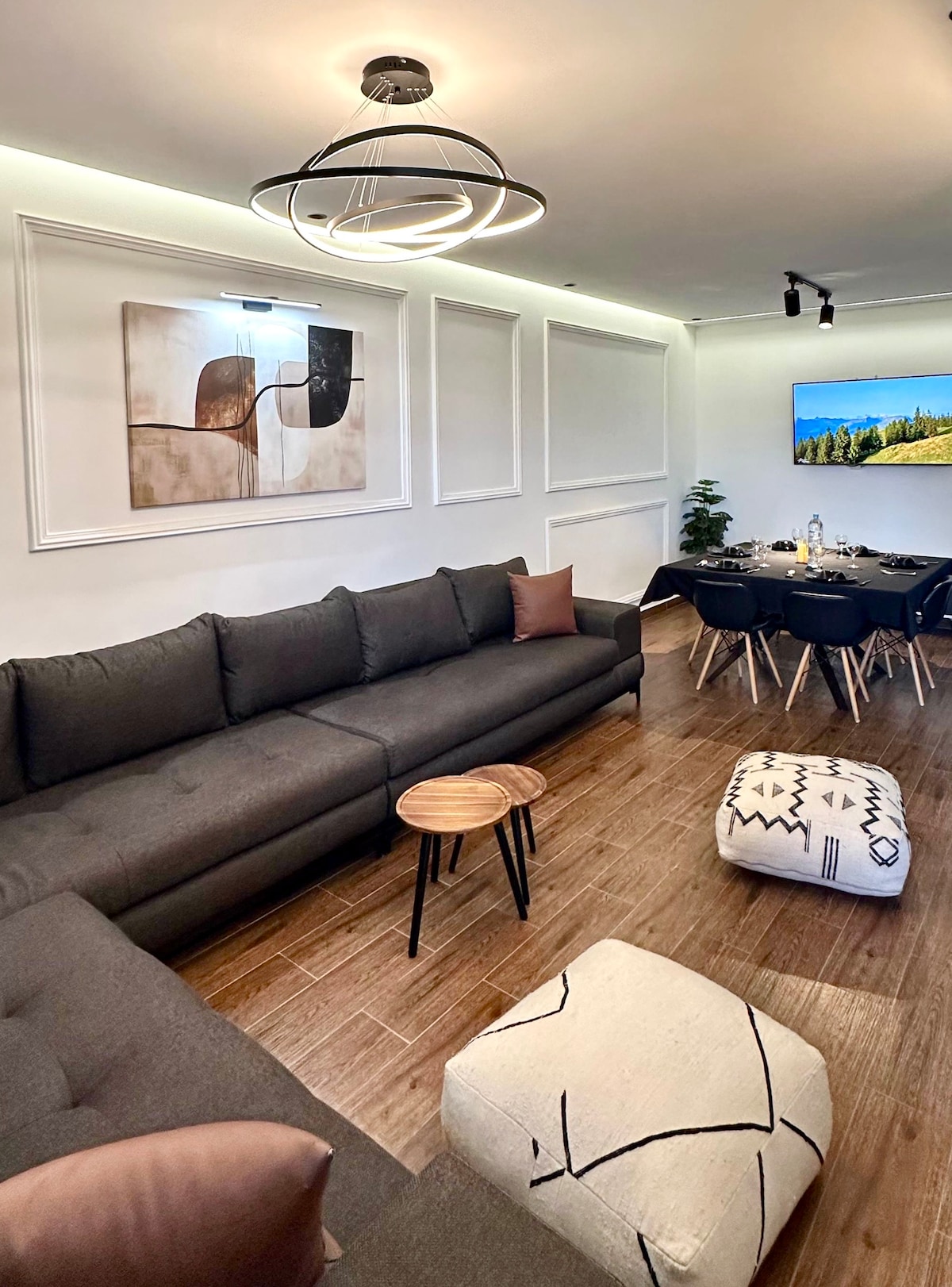 Velkommen til vår splitter nye leilighet med to soverom i et førsteklasses område i Tanger. Denne eksklusive eiendommen ligger i et av de mest ettertraktede områdene i byen, med døgnåpen concierge, og ligger bare ti minutters gange fra togstasjonen, City Centre Mall, Ibn Battuta Mall og strender. Det tilbyr både bekvemmelighet og luksus rett utenfor døren din. Privat parkering er tilgjengelig. Leiligheten har: fiberoptisk trådløst nettverk, et alternativ for sjåfør og en marokkansk frokost tilberedt av guvernøren vår (ekstra kostnad).