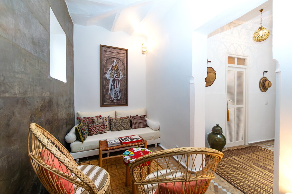 En tradisjonell riad i hjertet av Tangers medina, nylig renovert for et komfortabelt og autentisk opphold. Varm, lokal gjestfrihet fra gjestelederen vår, Nabil, og en deilig frokost laget med ferske, lokale ingredienser, tilberedt hver morgen med håndverksmessig omhu av Zhor, alt inkludert i prisen for oppholdet ditt. Komfort, ro og marokkansk sjel mellom to kontinenter.