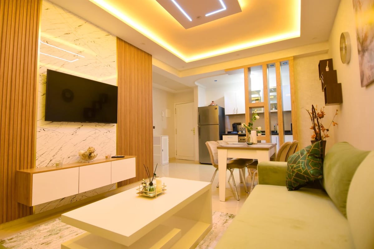 Veldig fin, moderne og koselig, i en luksusbolig i hjertet av Tanger. Den har et soverom med klimaanlegg og 55-tommers TV (Netflix, IPTV), en veldig pent innredet stue også med klimaanlegg, et veldig godt utstyrt kjøkken og et fint bad. Leiligheten tilbyr alle bekvemmelighetene du leter etter, og ligger i et sentralt område med alle slags butikker. Flott for et turist- eller forretningsopphold.