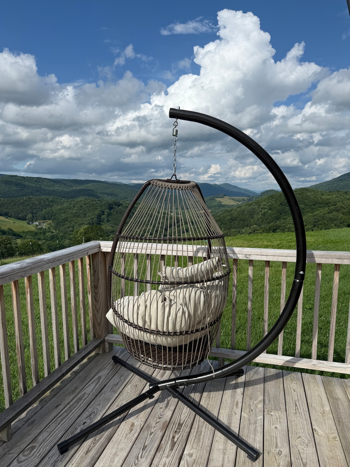 All photos are taken on the property—no filters needed! This elevated mountaintop retreat sits at 2,543 feet above sea level, perched atop our 66-acre property in the heart of the Appalachian Mountains. Rustic, serene, and completely surrounded by nature, the guest house offers sweeping 360-degree views with sunrises that will stop you mid-sip of your morning coffee and sunsets that make you forget what time it is.