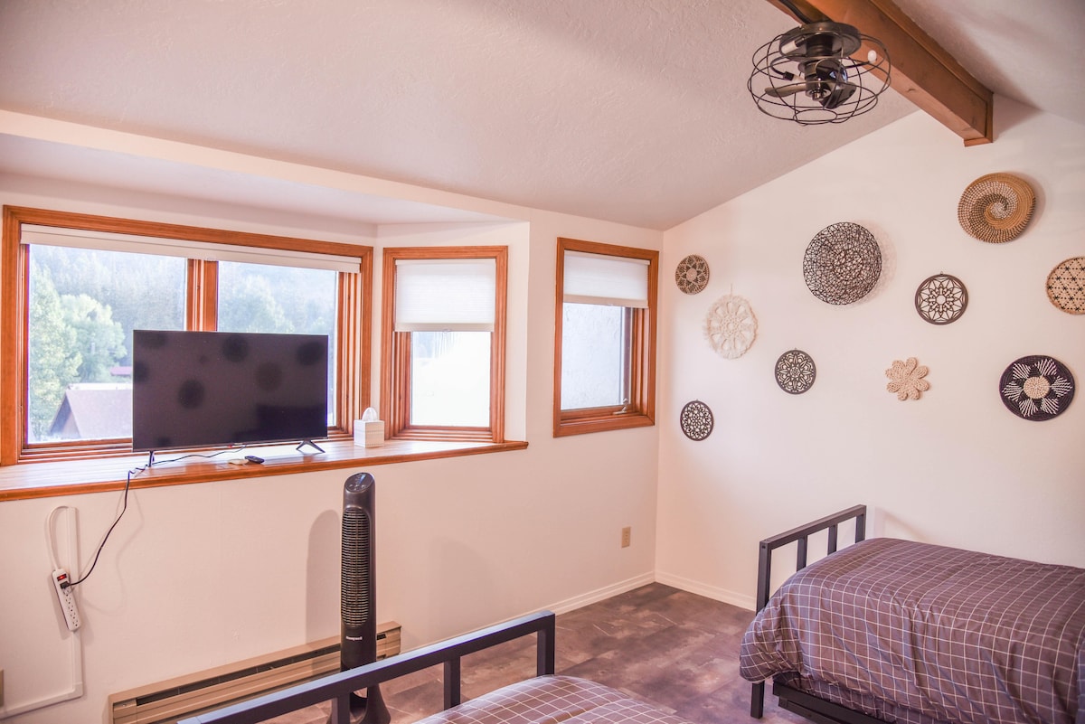 Kom og nyt dette vakkert renoverte rekkehuset i hjertet av Red River. Dette rekkehuset med 4 senger og 4,5 bad har plass til 10 personer og har alle moderne fasiliteter man kan be om, med smart-TV-er i hvert rom, høyhastighetsinternett og ladestasjon for elbiler. Hvert rom er smakfullt dekorert for å vise frem de fantastiske skiområdene i Nord-New Mexico, inkludert Red River, Angel Fire, Santa Fe og Taos. Rekkehuset ligger bare noen skritt unna Mainstreet Red River med fantastisk utsikt over skianleggene.