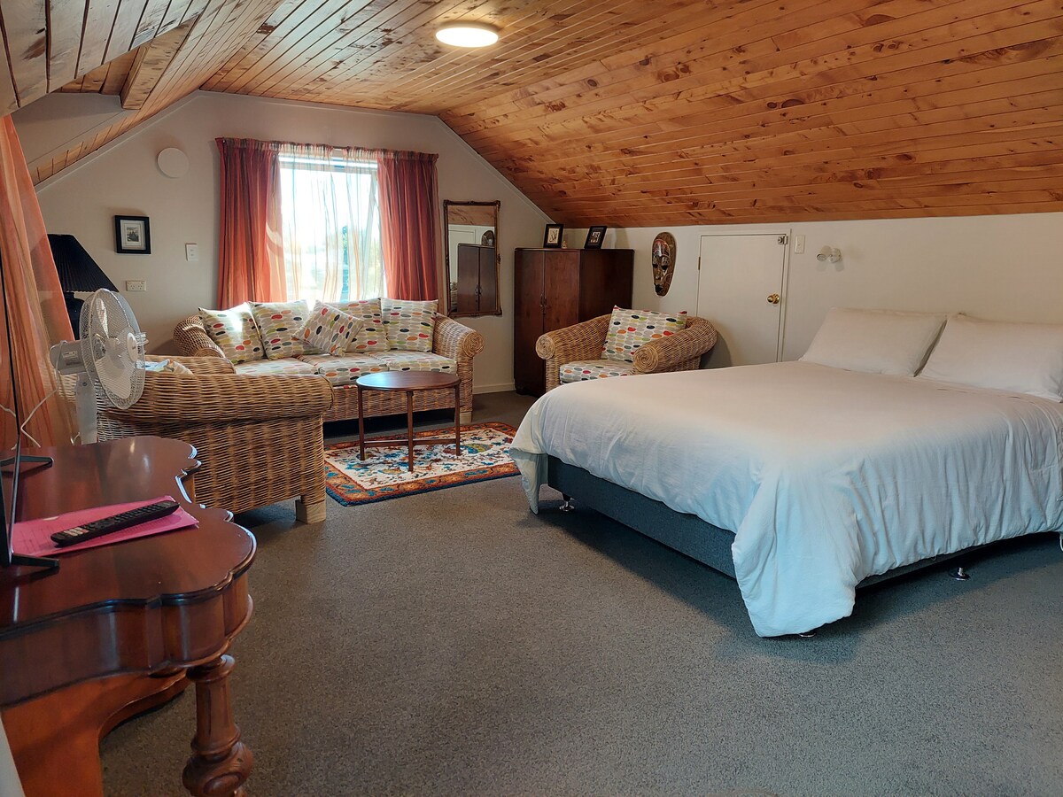 Velkommen til Cabbage Tree Corner, et koselig og privat sted å hvile. Det vakre tī kōuka (kåltreet) leder deg inn i denne fredelige soveplassen med ett soverom, som er perfekt for jobbreiser, arrangementer eller utforsking av Hawke's Bay-regionen. Sentralt plassert og lett tilgjengelig, har den egen inngang fra en felles innkjørsel, og tilbyr både bekvemmelighet og privatliv. Slapp av i rolige omgivelser og nyt et avslappende opphold i vårt fredelige, godt beliggende sted.