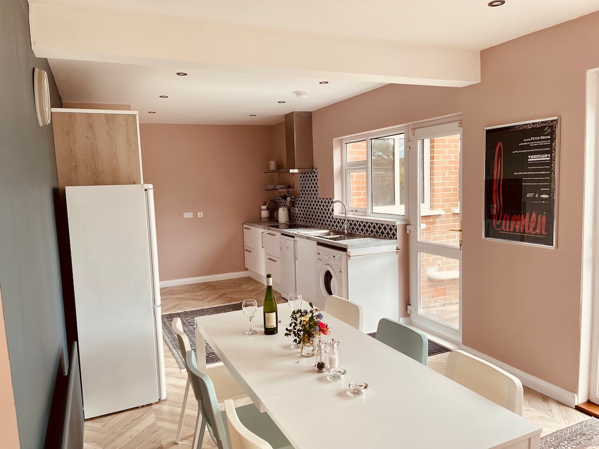 Dette elegante bostedet er perfekt for gruppeturer. Rolig gårdsplassering én km fra den vakre landsbyen Grangecon, som er hjemsted for Moores Pub & Grangecon Kitchen, ti minutter med bil til Rathsallagh, 30 minutter til Kildare Village, Whitewater Shopping Centre Newbridge, Blessington Lakes, Curragh Racecourse og Punchestown Racecourse, 50 minutter til Glendalough. 75 km til Dublin lufthavn. Tilbyr alle moderne bekvemmeligheter og stil i en nybygning med velutstyrt kjøkken, vaskerom og oppbevaringsrom.