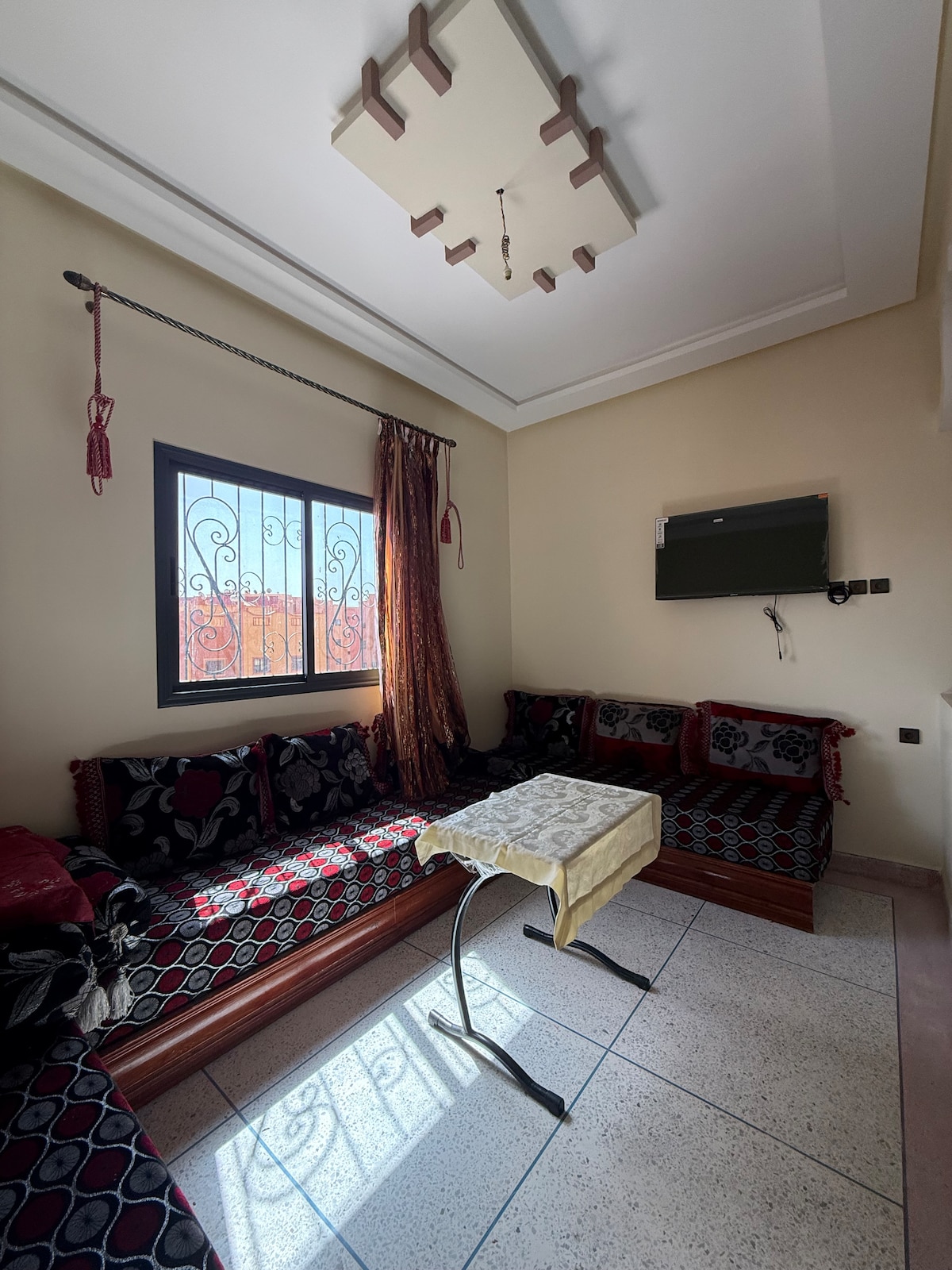 Spacious City Center Retreat with Stunning Rooftop Views Experience the best of Ouarzazate from our, light-filled apartment. Perfectly situated in the heart of the city, this home offers a peaceful sanctuary with massive rooms, modern amenities, and a rooftop terrace that captures the magic of the Moroccan landscape. Massive & Calm Comfortable Bedrooms Workspace Ready Traditional Living Fully Equipped Kitchen