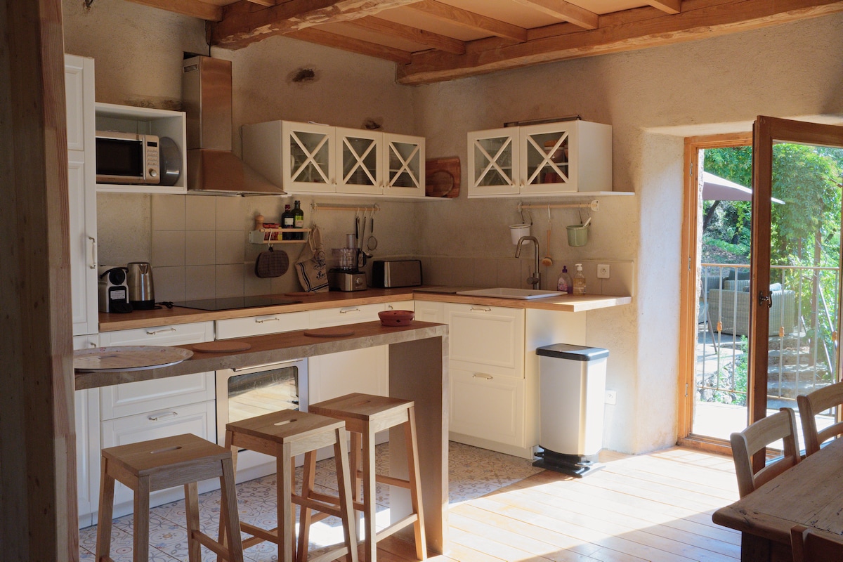 Vi ønsker deg velkommen til vår vakre region Cévennes, klassifisert som en UNESCO verdensarv. Beliggende ved foten av Mont Aigoual, omgitt av natur, tilbyr vår hytte et opphold som er perfekt for avslapning, hvor du kan nyte de mange aktivitetene som sykling, fotturer, bading og gi deg selv en stund med velvære i vårt sted dedikert til velværemassasje. I en skogkledd hage har hytta vår funnet sin plass i en gammel silkefabrikk og ligger ved siden av et hus fra det 19. århundre.