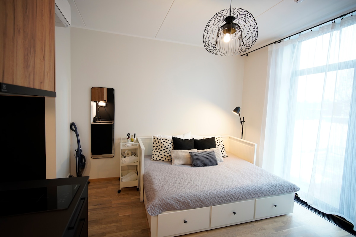 Nylig renovert ettromsleilighet i solfylte Karlova, 15 minutters gange fra Tartu sentrum. Den kompakte leiligheten har alt du trenger for en ferie eller en jobbreise. Kalevi st er en rolig og fredelig gate, parkering på gaten er gratis. I nærheten ligger dagligvarebutikken Rimi, håndverkskaféen Karlova Kohv, Barlova, Aleksandri pub, Aura Waterpark, AHHAA vitenskapssenter og mange andre fine steder! Kjøpesenteret Eeden, A. Le Coq og NET sportshaller ligger rett over broen.