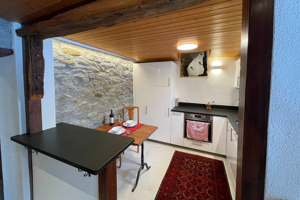 Oppdag den koselige studioleiligheten vår i Täsch, ideell for to personer. Nyt en komfortabel atmosfære med en stor dobbeltseng, fullt utstyrt kjøkken og bad. Slapp av på terrassen og bruk trådløst nettverk og TV. Vaskemaskinen er ideell for lengre opphold. Perfekt for par, alenereisende og forretningsreisende.