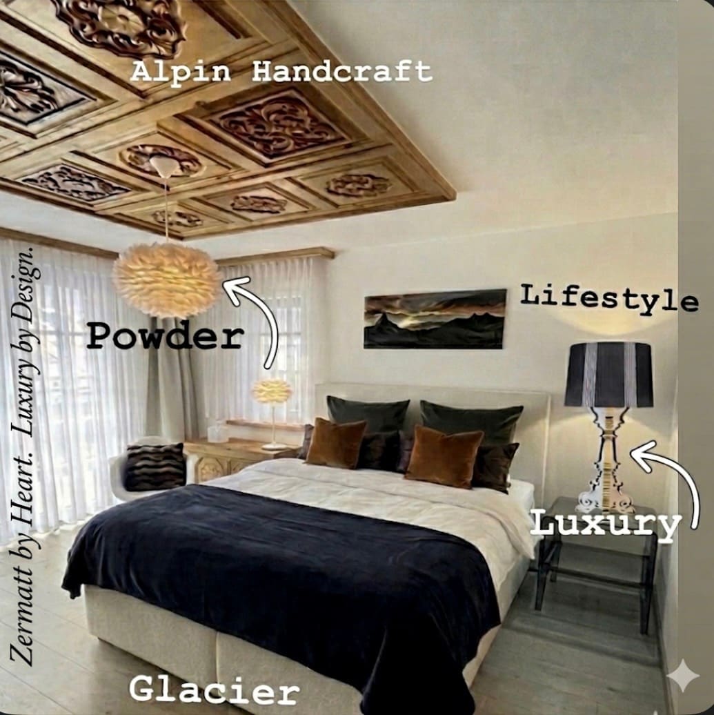 4-roms leilighet 120 m2 i 4. etasje. Stue / spisestue med kabel-TV, radio og CD. 2 dobbeltrom hver med 1 dobbeltseng (hver dobbeltseng har to separate madrasser 90 x 200 cm). 1 rom med 1 x 2 køyesenger. Åpent kjøkken; ovn, oppvaskmaskin, keramisk kokeplate, mikrobølgeovn, kjøleskap, Nespresso-kaffe, spisebord. Bad/dusj, boblebad/toalett. Balkong 9 m2 med balkongmøbler. Topp utsikt over Matterhorn. Internett (WLAN), røykfritt overnattingssted 2x WC, 2x dusj Rengjøringsgebyr inkl. sengetøy + badehåndklær