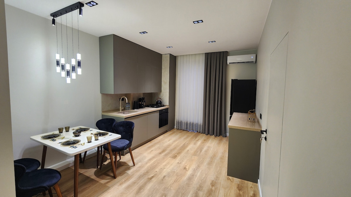 Velkommen til ditt moderne hjem hjemmefra i hjertet av Tasjkent! Denne stilige leiligheten med ett soverom og arbeidsrom på Akay City Residence tilbyr komfort og bekvemmelighet for både korte og lange opphold. Leiligheten er fullt møblert og har en king size-seng, et koselig oppholdsrom med TV og gratis trådløst nettverk og et fullt utstyrt kjøkken hvor du kan tilberede favorittmåltidene dine. Perfekt for familier, enslige reisende eller forretningsgjester som ønsker både avslapning og produktivitet.