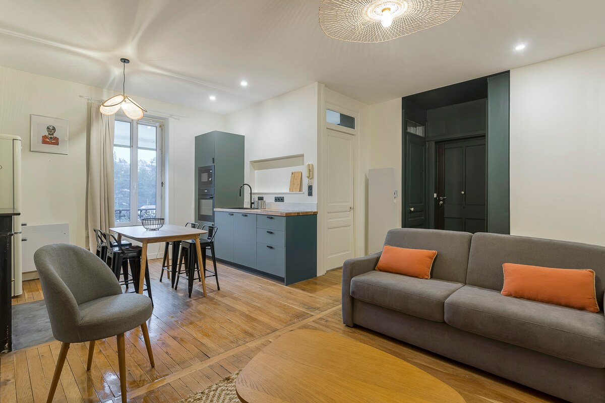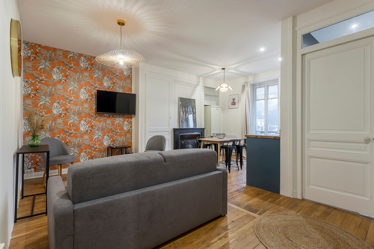 Velkommen til Le République – din pied-à-terre for to personer i hjertet av Tassin-la-Demi-Lune! Le République har en ideell beliggenhet i sentrum av Tassin og Portes de Lyon, og tilbyr deg alle bekvemmelighetene du trenger for et hyggelig opphold. Denne moderne og varme leiligheten er fullstendig renovert og perfekt for en ferie, en forretningsreise eller et besøk til Lyon. - Kollektivtransport tre minutters gange for å enkelt nå Lyon. - Butikker, restauranter ved foten av bygningen.