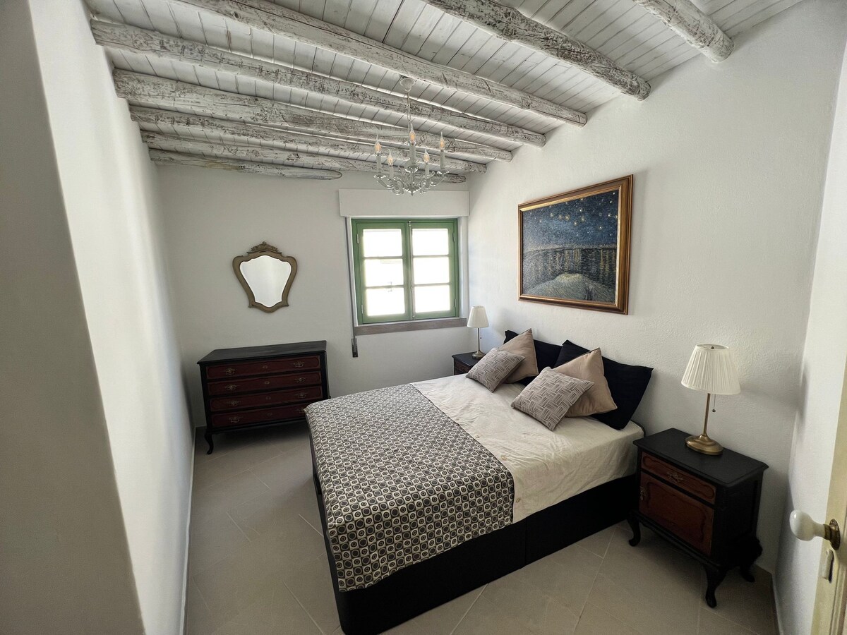 Romslig ferieleilighet i et rolig område og nær alt du trenger. Ligger i Santa Luzia-Tavira. Består av: 1 soverom med dobbeltseng 1 mesanin med dobbeltseng 1 stort kjøkken med hvitevarer (inkludert oppvaskmaskin og vaskemaskin) 1 stue 1 toalett 2 store terrasser: en med havutsikt, den andre har grill 1 garasjeplass Den ligger 1000 meter fra toget til Pedras d'el Rei-stranden og 200 meter fra båten til Terra Estreita-stranden (5 minutter med båt). Kapasitet: 4 voksne.