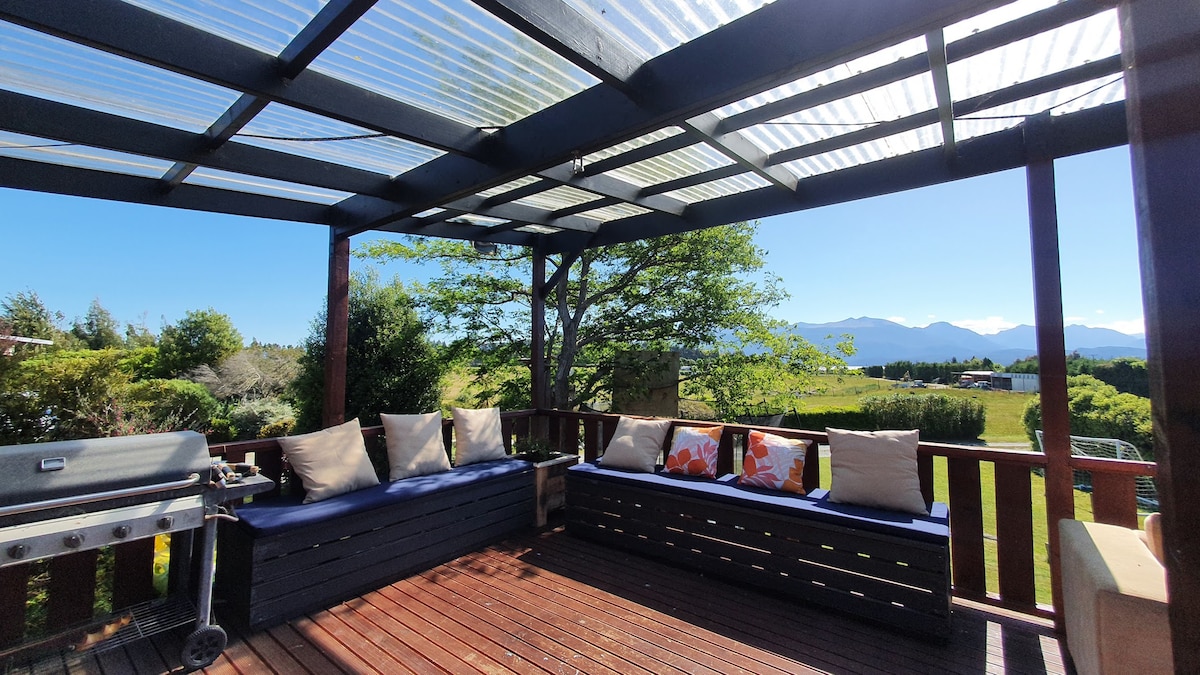 Velkommen til det vakre hjemmet vårt, en perfekt base når du besøker Fiordland. Beliggenheten er viktig, og du blir ikke skuffet. En kort spasertur til butikker, restauranter og Te Anau-sjøen. Fantastisk flyt mellom innendørs og utendørs, grillplass, et lite reservat ved siden av huset hvor barn kan leke og plass til båten din. Et flott moderne kjøkken, godt utstyrt. Du vil elske luksusferien vår, med koselig gasspeis med utsikt over vakker fjellutsikt. Te Anau er det ideelle stoppet for å oppleve Milford & Doubtful Sounds.