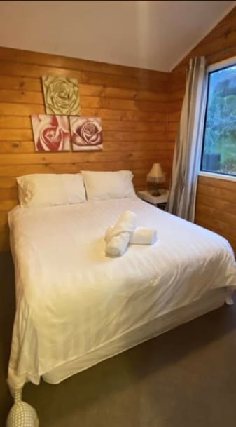 Slapp av i hytta, eller utforsk de rolige skogene og hagene våre på 25 hektar. Nyt bassenget eller en spasertur i bushen. Naturen venter. Lad opp batteriene til fuglesang og brisen i tretoppene. Denne hytta med to soverom og ett bad har et komplett kjøkken og en privat veranda med utsikt over beite og skog, og utsikt over Cavalli-øyene i det fjerne. Vår private landlige gård har flere fellesområder og fasiliteter å nyte på stedet. 15 minutter til Waipapa eller 20 minutter til Kerikeri.