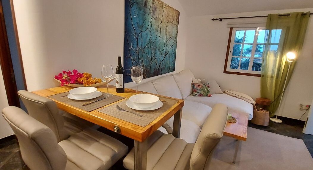 Leiligheten vår har en fantastisk havutsikt. Det er veldig romslig, lyst og komfortabelt. Ideelt for å tilbringe noen dager avslappende og rolig, selv om det også er veldig nærme sandstranden, hvor du kan surfe eller bare gå en spasertur og nyte utsikten over Bajamar og Punta del Hidalgo. Du vil elske stedet mitt på grunn av utsikten, det koselige stedet, kjøkkenet og beliggenheten. Innkvarteringen min passer bra for par, eventyrere og naturelskere.
