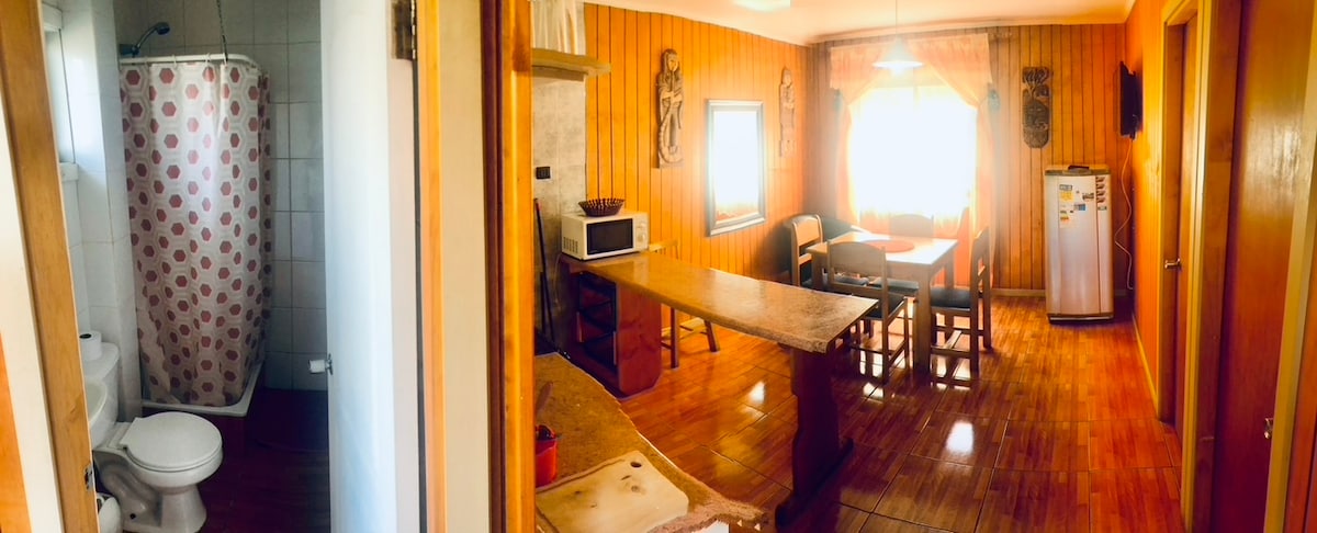 Nyt enkelheten i dette rolige og sentrale overnattingsstedet, bare tre kvartaler fra sentrum av Valdivia og fire kvartaler fra elven. 500 meter fra supermarked og apotek. Inkluderer alle grunnleggende tjenester for et komfortabelt opphold. Smart-TV, vaskemaskin, mikrobølgeovn, håndklær, hårføner, sjampo, såpe, grunnleggende kjøkkenutstyr (salt, olje, osv.)