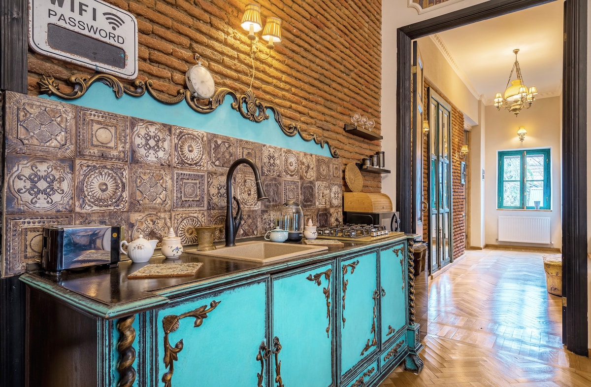 Denne leiligheten med tre soverom er en kronjuvel i historiske gamle Tbilisi, og den er virkelig unik. Ved første øyekast vil du oppleve sjarmen til gamle Tbilisi – en naturlig syntese av Europa og Asia. Innenfor gangavstand til alle severdigheter. Denne lyse og romslige leiligheten er et autentisk Tbilisi-hjem som minner om et boutiquehotell. Hvert rom er fullt av sjarmerende antikviteter og håndlagde gjenstander, perfekt for fotografering på sosiale medier. Her kan du slappe av og skape uforglemmelige minner.
