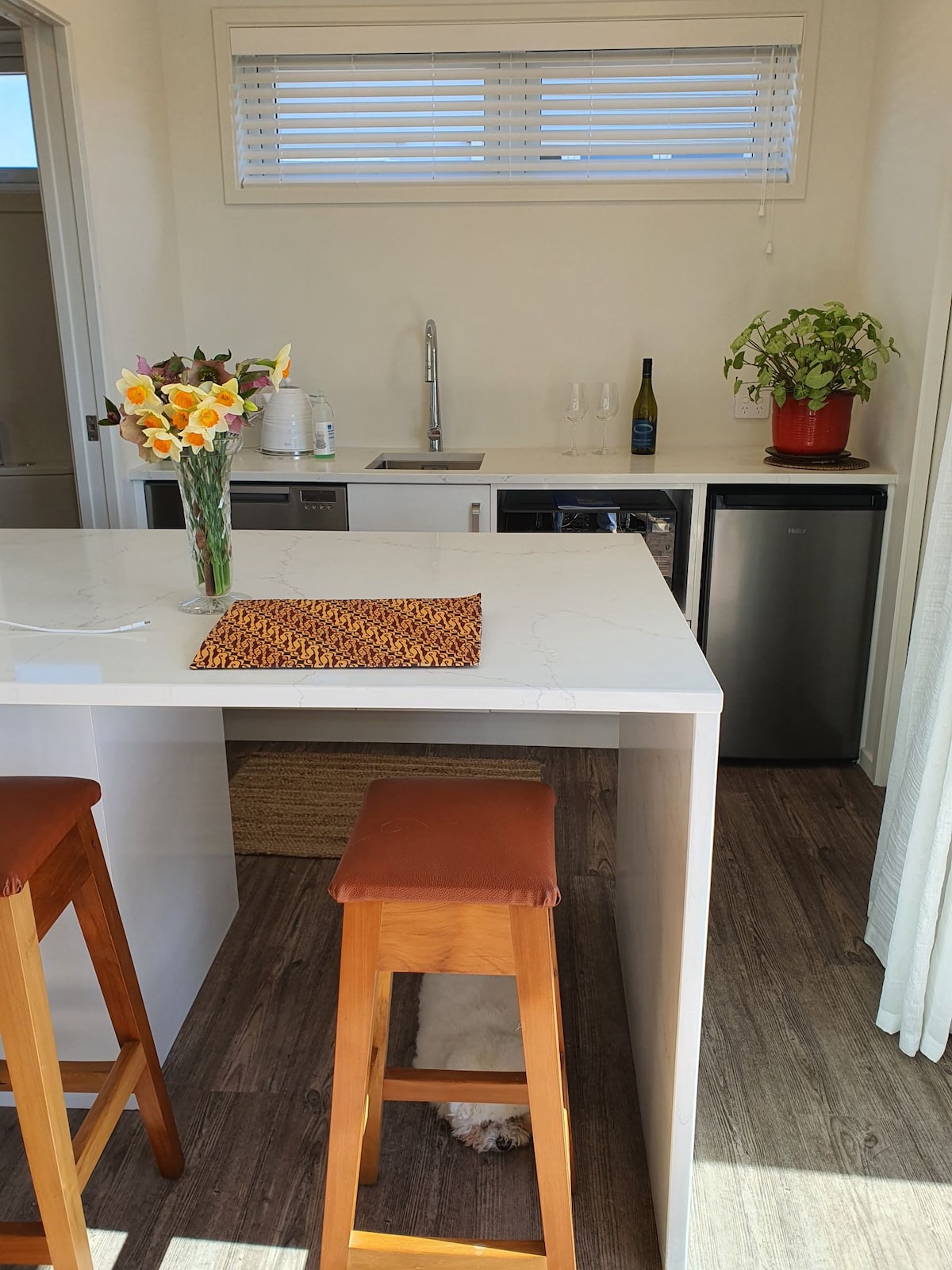 Velkommen til den splitter nye «Clever Cube». Når vi ikke er vertskap for gjester, er Clever Cube et showroom for teknologien vi har brukt. Det kan være smart, men det er også komfortabelt og privat, med en fantastisk fjellutsikt. «Clever Cube» er en eksklusiv studioleilighet med te- og kaffefasiliteter. Dette er det perfekte stedet å lade opp etter en travel dag i Mackenzie. Vi kjører for tiden en spesialtilbud fordi vi ikke har fått fullført landskapsarbeidet. Se bildene.