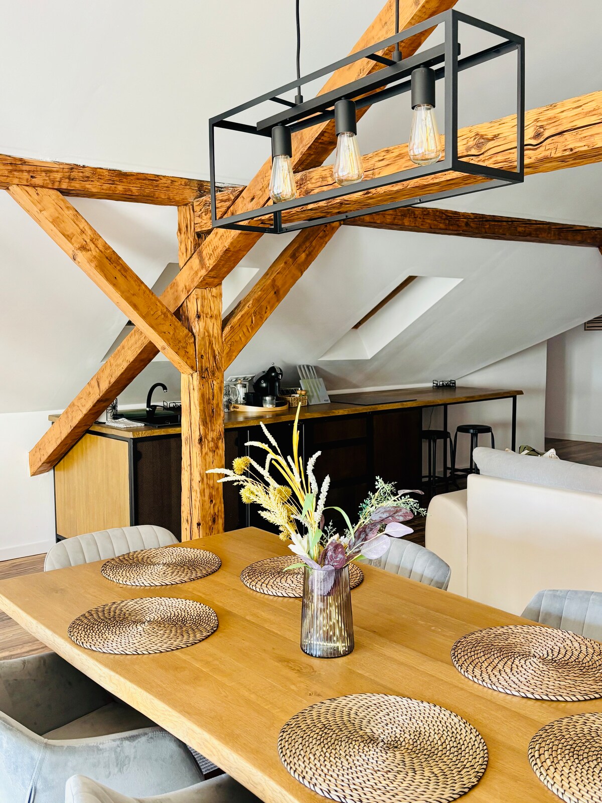 Velkommen til den koselige A-rammehytta i tre som ligger i vakre fjell. Nyt freden i naturen med en elv og frodige skoger en kort spasertur unna, pluss en stor lekeplass i nærheten. Bo i nærheten av den livlige landsbyen mens du nyter det rolige landskapet, med vennlige hester, kyr og sauer som passerer. Din perfekte utflukt venter!