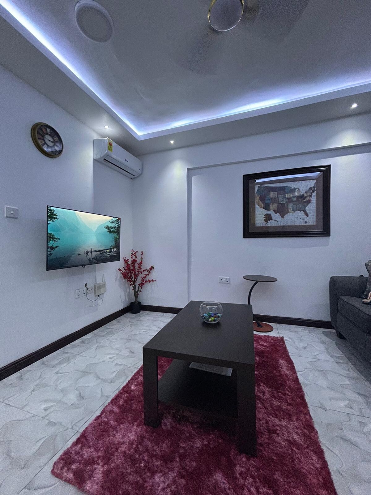 Nyt et rolig og komfortabelt opphold i denne koselige ettromsleiligheten med eget bad, stue og soverom med klimaanlegg, fullt utstyrt kjøkken, privat terrasse, gratis parkering, TV i begge rommene og en vaskemaskin. Leiligheten ligger i et rolig nabolag med enkel tilgang til butikker og transport, og den er ideell for enslige reisende og par. Et daglig forhåndsbetalt brukstillegg på GHS 30 og 6 GB med trådløst nettverk er inkludert. Eventuell ekstra bruk er på gjestens regning.