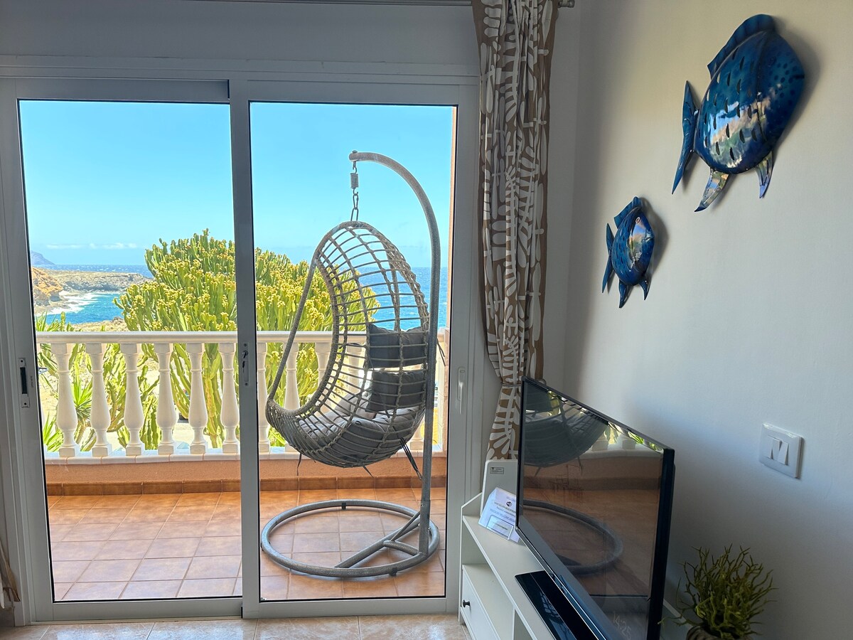 GYLLEN OASE VED STRANDEN. Nyoppusset, perfekt plassert, fullt møblert luksusleilighet med en privat terrasse med utsikt over Atlanterhavet og bare noen få skritt fra Playa Amarilla-stranden. Fredelig og langt fra overfylte områder, men likevel i nærheten av supermarked og restauranter. Bare 15 minutter med bil fra Tenerife South lufthavn. Gratis parkering rett under leiligheten. Felles basseng. Erfaren Superhost med over 2200 anmeldelser.