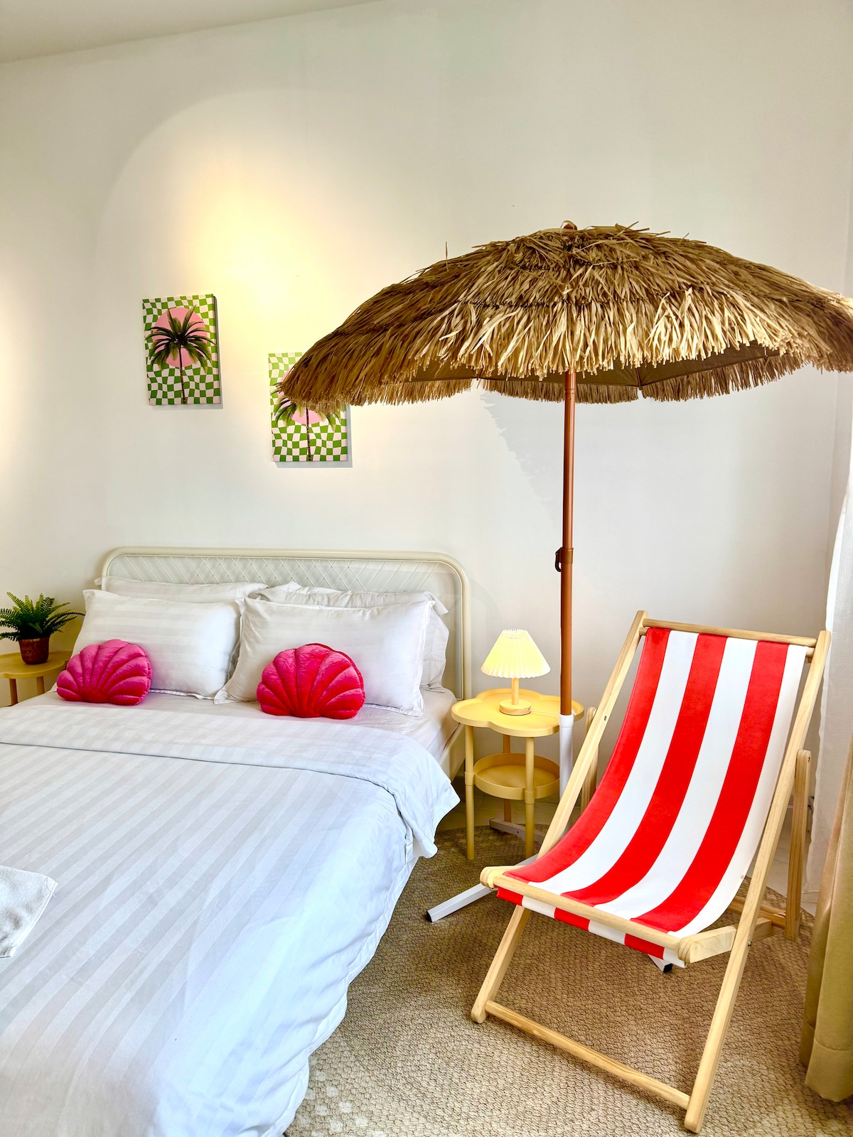 ALOHA! Step into a cozy beach-themed retreat with a charming unique touch. With two bedrooms, a welcoming living room, and a stylish dining area, it’s ideal for relaxing getaways. Enjoy your meals with a backdrop of tropical-inspired art, a unique hanging chairs and cozy lounge seating. Feel the ocean breeze, watch passing ships, and soak in the peaceful coastal vibe. The apartment is secure, private, and perfect for those who love both comfort and a touch of beach paradise.