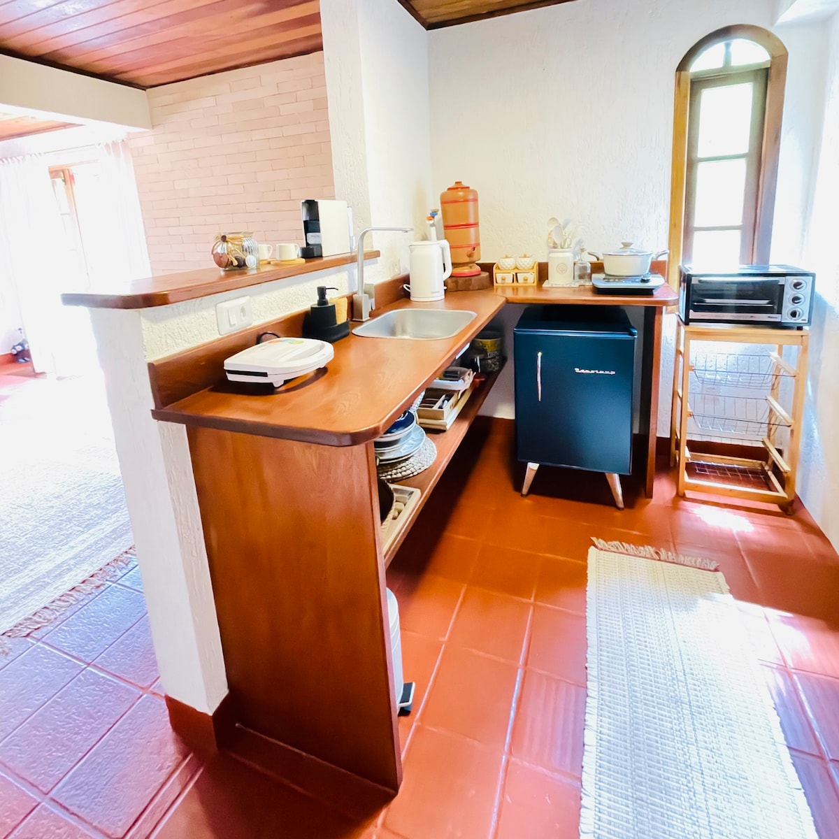 Vakkert hus i provençalsk stil med privat terrasse og basseng med utsikt over bekken. To vakre suiter med queen- og dobbeltsenger, balkong, split-air og utsikt over innsjøen. Mezzanin ved siden av hovedsuiten med enkeltseng. Komplett kjøkken, stor stue, bærbar grill! Ideelt for familier eller romantiske øyeblikk i Serra de Petrópolis. Kjæledyret ditt er hjertelig velkommen! Vi tillater ikke arrangementer på stedet!