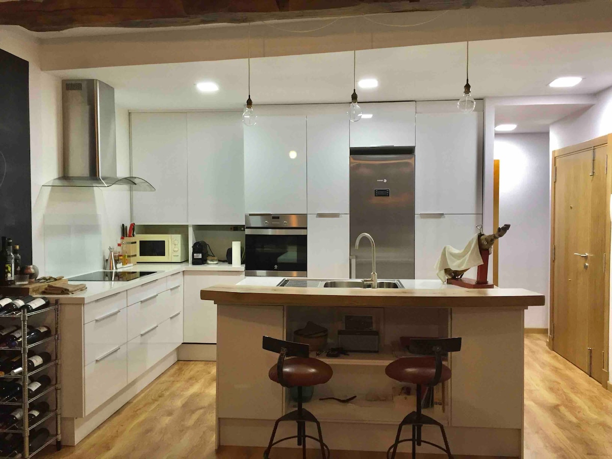 Eiendommen vår, personlig renovert med mime, tar seg av alle detaljene for å gjøre oppholdet ditt til en hyggelig opplevelse. På grunn av sin romslighet og fordeling av plass, er det ideelt for korte opphold som et par, familie eller venner. Den er også ideell for lengre opphold for arbeid eller fjernarbeid. Den kombinerer et vakkert og rolig miljø, Azcárraga-torget, med kort avstand til gang-, tapas- og shoppingområder. Stranden ligger en 10-minutters spasertur unna, og badeplassen ligger tre minutter unna.