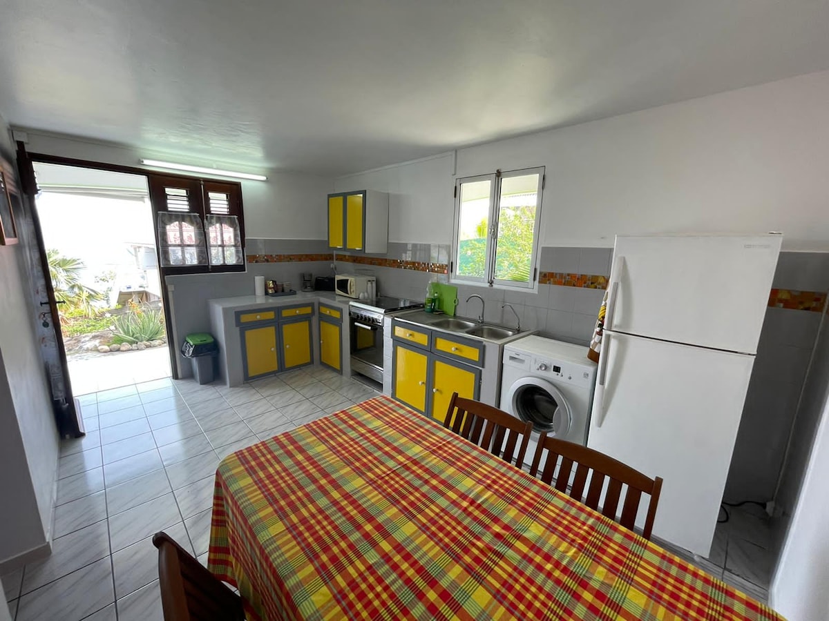 Bungalow på 70 M2, plassert i første etasje med tilstøtende hage. Soverom, kjøkken og stue med utsikt over terrassen som har utsikt over Baie des Saintes og en tropisk hage. Boligen ligger 4 minutters gange fra sentrum, to strender, restauranter og et dykkesenter, men likevel rolig. Du vil sette pris på komforten, den magiske utsikten og roen. Denne boligen til en attraktiv pris har ikke tilgang til bassenget på toppen av eiendommen.