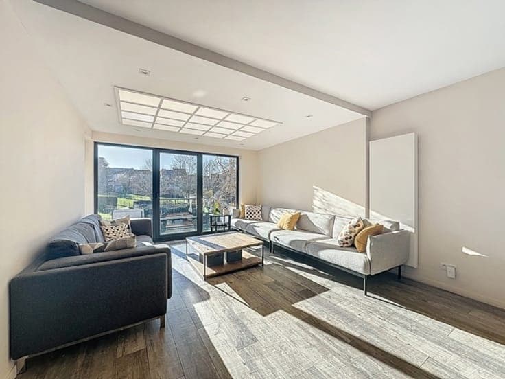 Et praktfullt 'herregårdshus' fra det 19. århundre med gamle stallbygninger i bakgården, fullstendig ombygd i loftsstil, venter deg i hjertet av de europeiske institusjonene. Huset er 200 m2 og ligger 8 minutter fra Schuman-plassen, Europaparlamentet og Flagey-plassen, hvor du finner mange barer og restauranter. Størrelsen på huset er ideelt for grupper og familier, slik at du kan tilbringe litt tid i et typisk Brussel-hus.