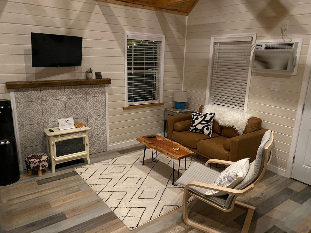 **Oppdaterte rengjøringsrutiner for å oppfylle/overgå CDC-anbefalinger** Finn deg til rette på et opphold på vårt gjemmested. Dette private gjestehuset ligger i en lund av gamle eiketrær, over den frittstående garasjen vår. Vi pusset opp fra topp til bunn og slapper av i vårt store uteområde. Dette rolige gjestehjemmet har plass til opptil seks personer. Og best av alt? Vi er fem minutter fra Downtown FtW og sentralt plassert i Tarrant County. 20 minutter til å komme seg hvor som helst, inkludert DFW flyplass, AT&T stadion og TX Rangers.